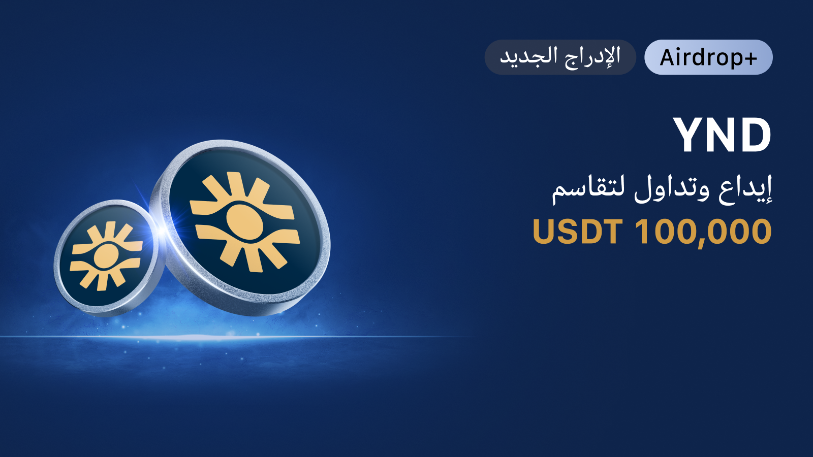 انضموا إلينا للاحتفال بإدراج Yieldnest (YND) على منصة MEXC في فعالية خاصة مفتوحة للمستخدمين الجدد والحاليين. لا تفوّتوا فرصة مشاركة حوض جوائزكم الرائعة والاستمتاع بأقل رسوم تداول في السوق عند التداول مع MEXC!