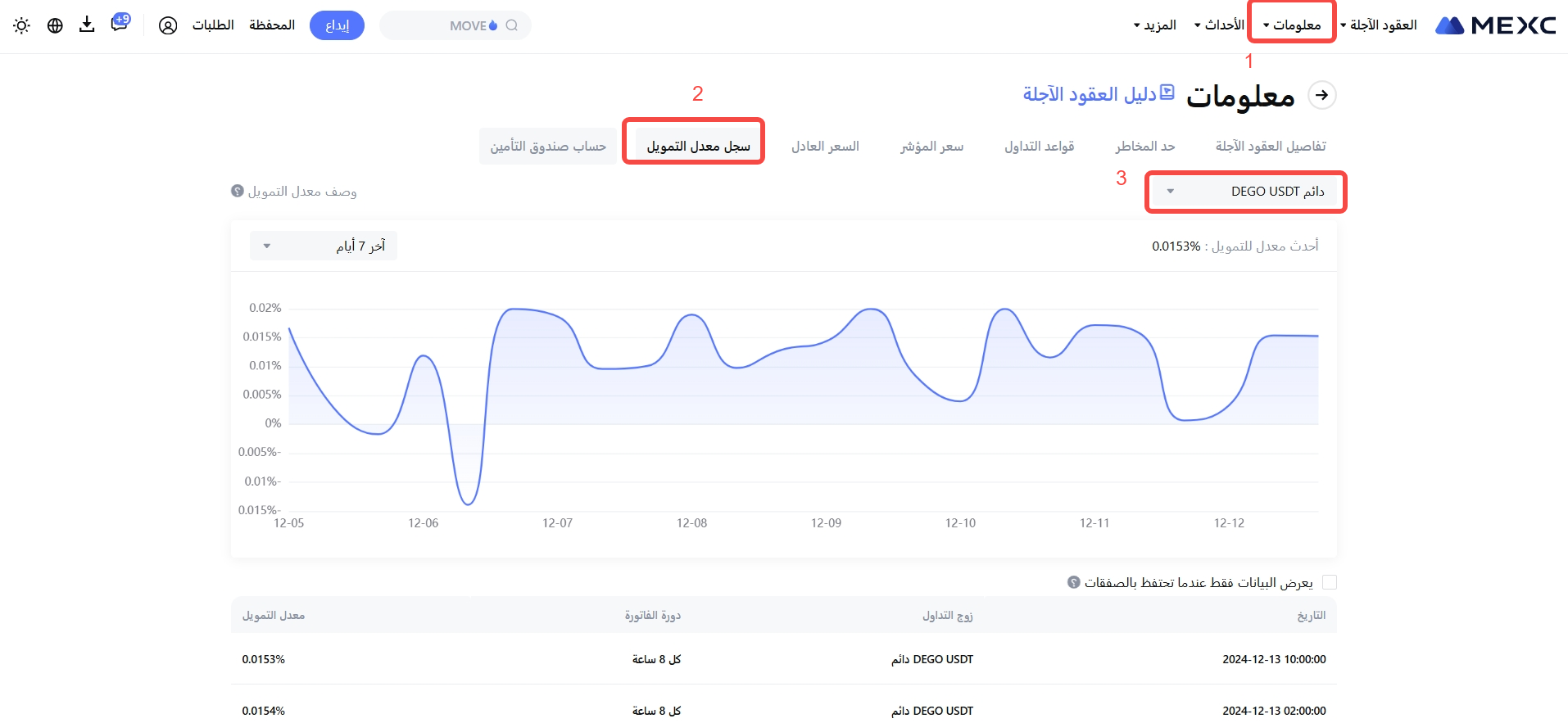 في الساعة 14:05، 13 ديسمبر 2024 (UTC)، قامت MEXC بتعديل وتيرة تسوية معدل التمويل لعقود DEGO USDT-M الآجلة الدائمة. أصبح معدل التسوية الجديد الآن مرة واحدة كل 4 ساعات. التفاصيل كما يلي: