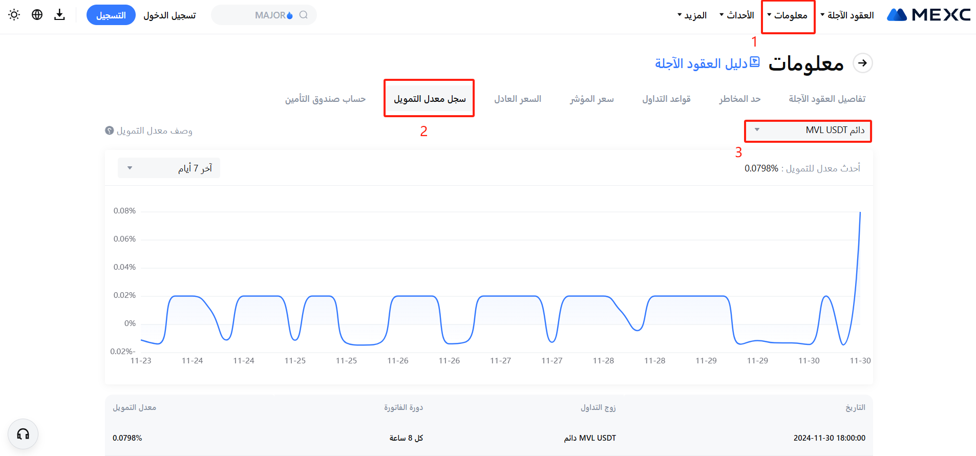 في الساعة 15:30، 30 نوفمبر 2024 (UTC)، قامت MEXC بتعديل وتيرة تسوية معدل التمويل لعقود MVL USDT-M الآجلة الدائمة. أصبح تردد التسوية الجديد الآن مرة واحدة كل 8 ساعات. التفاصيل كما يلي: