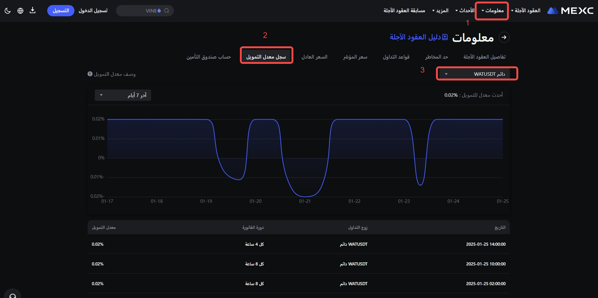 لمعرفة أحدث تفاصيل معدل التمويل، يرجى الرجوع إلى المعلومات - سجل معدل التمويل.