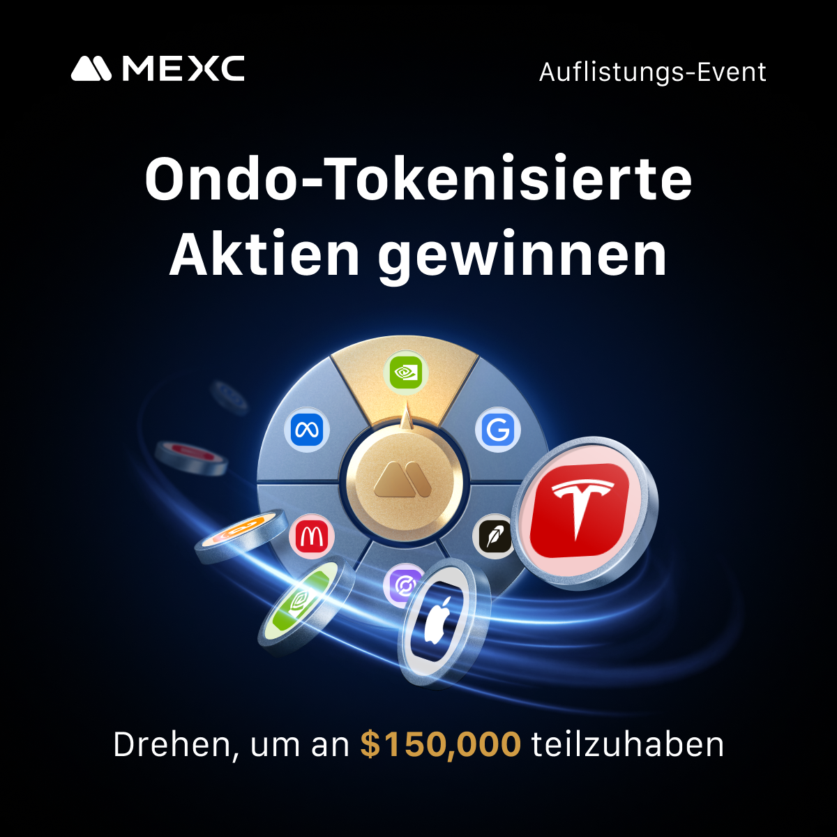 MEXC führt den Weg an und listet tokenisierte Aktien von ONDO Global Markets – mit Top-Assets wie NVDA, TSLA, AMZN, AAPL, META, GOOGL, COIN, HOOD, CRCL und MCD. Seien Sie unter den Ersten, die feiern und an dem Preispool teilhaben!