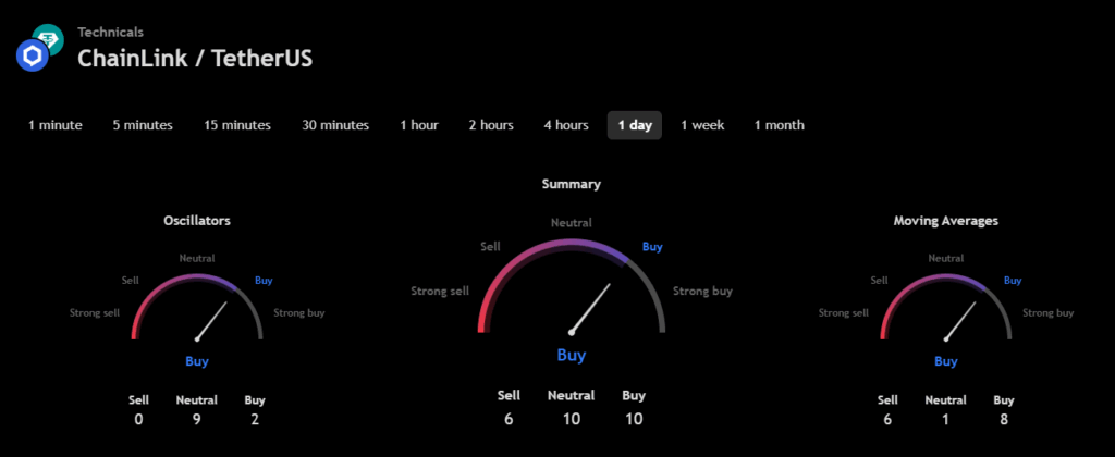 The technical analysis indicators such as Relative Volume (RVOL), Moving Average (MA), and Relative Strength Index (RSI) of Chainlink (LINK) are shown in the chart below.
