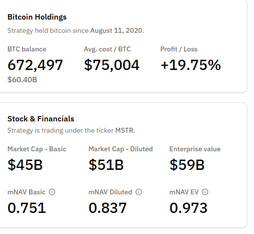 When mNAV falls below 1.0, investors can theoretically buy Bitcoin more cheaply by purchasing the asset directly rather than holding a stock that represents it.