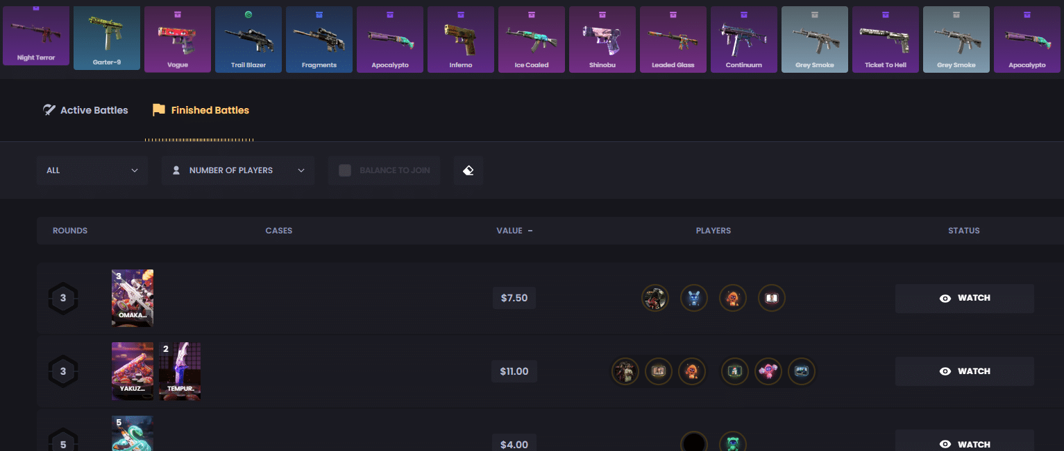 Case battle functionality adds a competitive overlay to standard openings. Players open identical cases simultaneously and compare the total value of results. The battle format introduces: