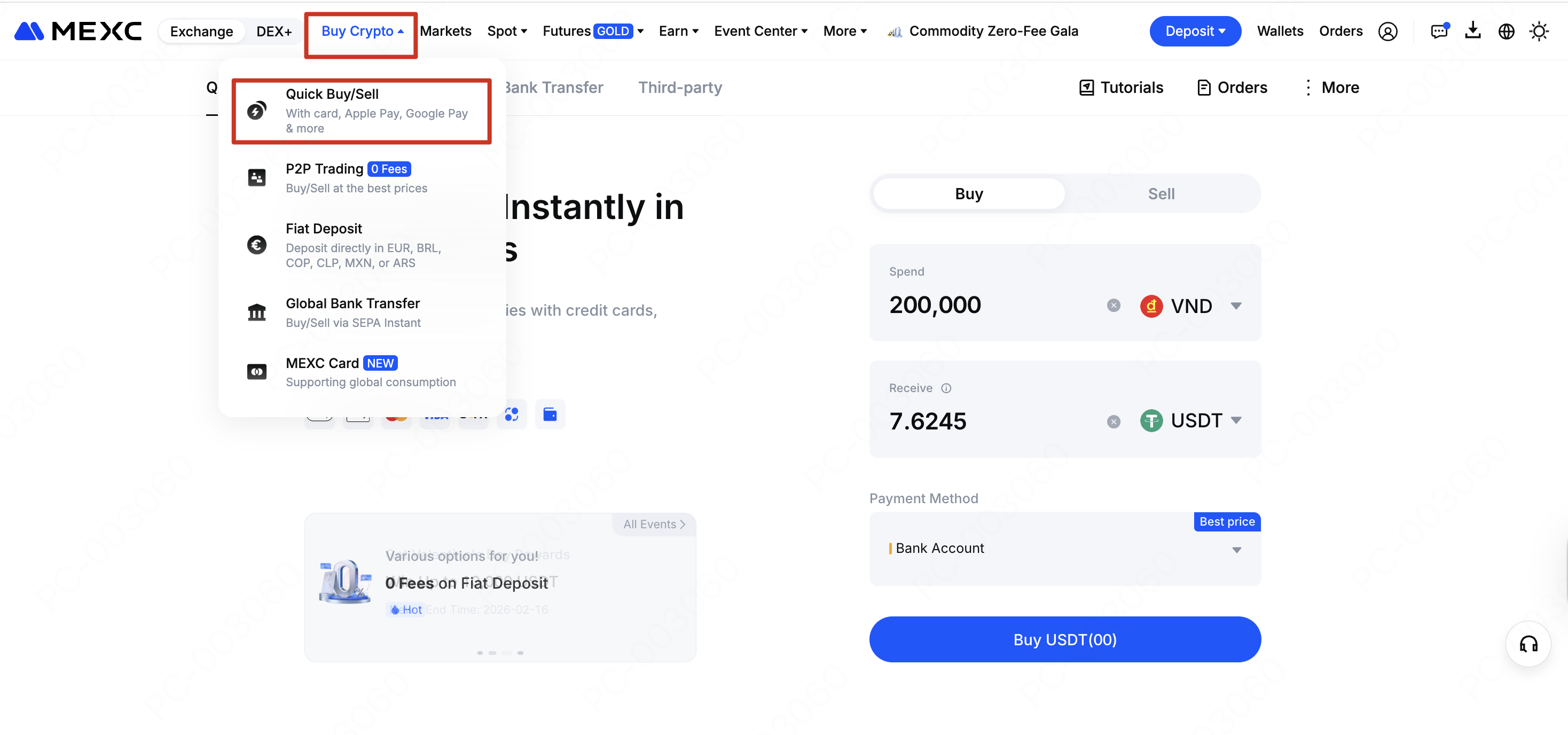 This guide walks you through how to purchase crypto using Vietnamese Dong (VND) on MEXC via VietQR.