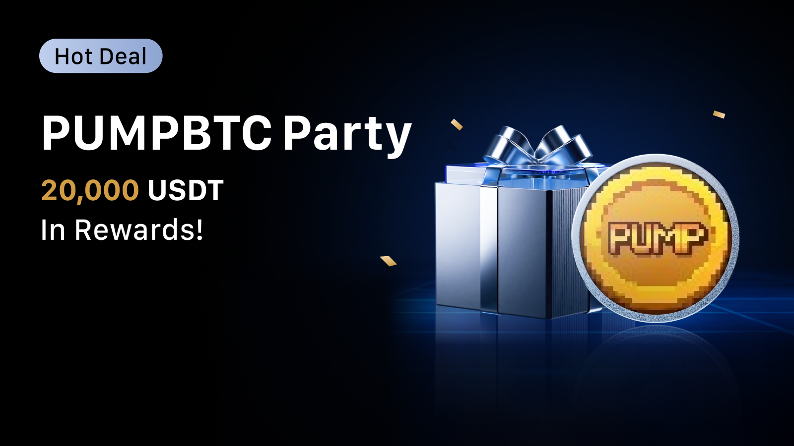 During the event, make a net deposit of at least 400 PUMPBTC or 100 USDT or 100 USDC to receive 10 USDT. Rewards are limited to 500 users on a first-come, first-served basis.