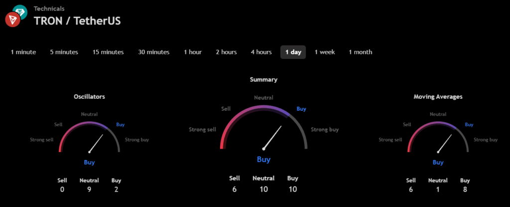 From the readings on the chart above, we can make the following inferences regarding the price momentum of TRON (TRX).