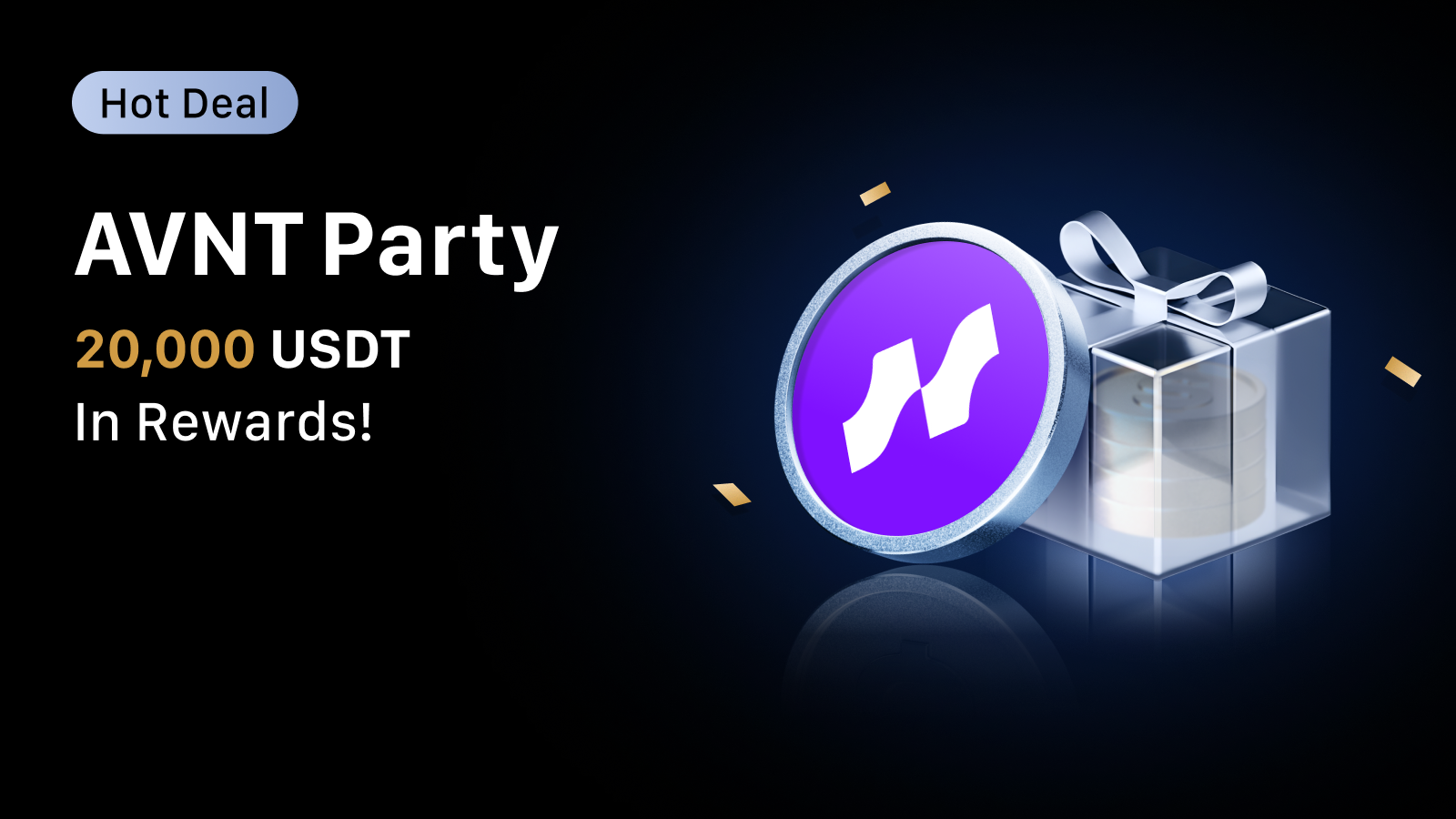 During the event, make a net deposit of at least 52 AVNT or 100 USDT or 100 USDC to receive 10 USDT. Rewards are limited to 500 users on a first-come, first-served basis.