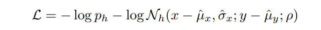 \ Ultimately, the prediction objective is, for each timestep, to maximize the log-likelihood of the ground truth trajectory waypoint (x, y) belonging to the position distribution outputted by the GMM: