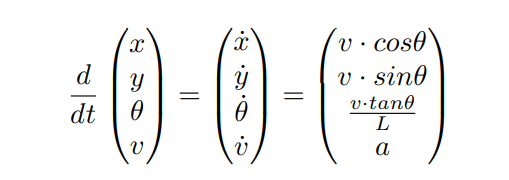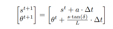 \ Following the Bicycle Model, the update for speed and heading at each timestep is: