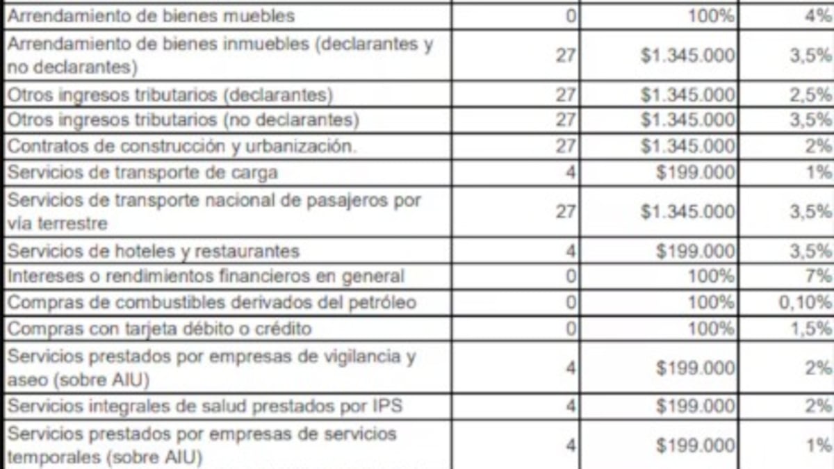 Esta es la tabla de rentención en la fuente en Colombia en 2025