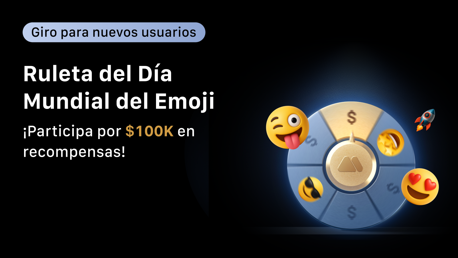 ¡Únete a la diversión y gira la Ruleta del Día Mundial del Emoji para ganar grandes recompensas! ¡Hay un fondo de premios de $100,000 en tokens populares esperando por ti!