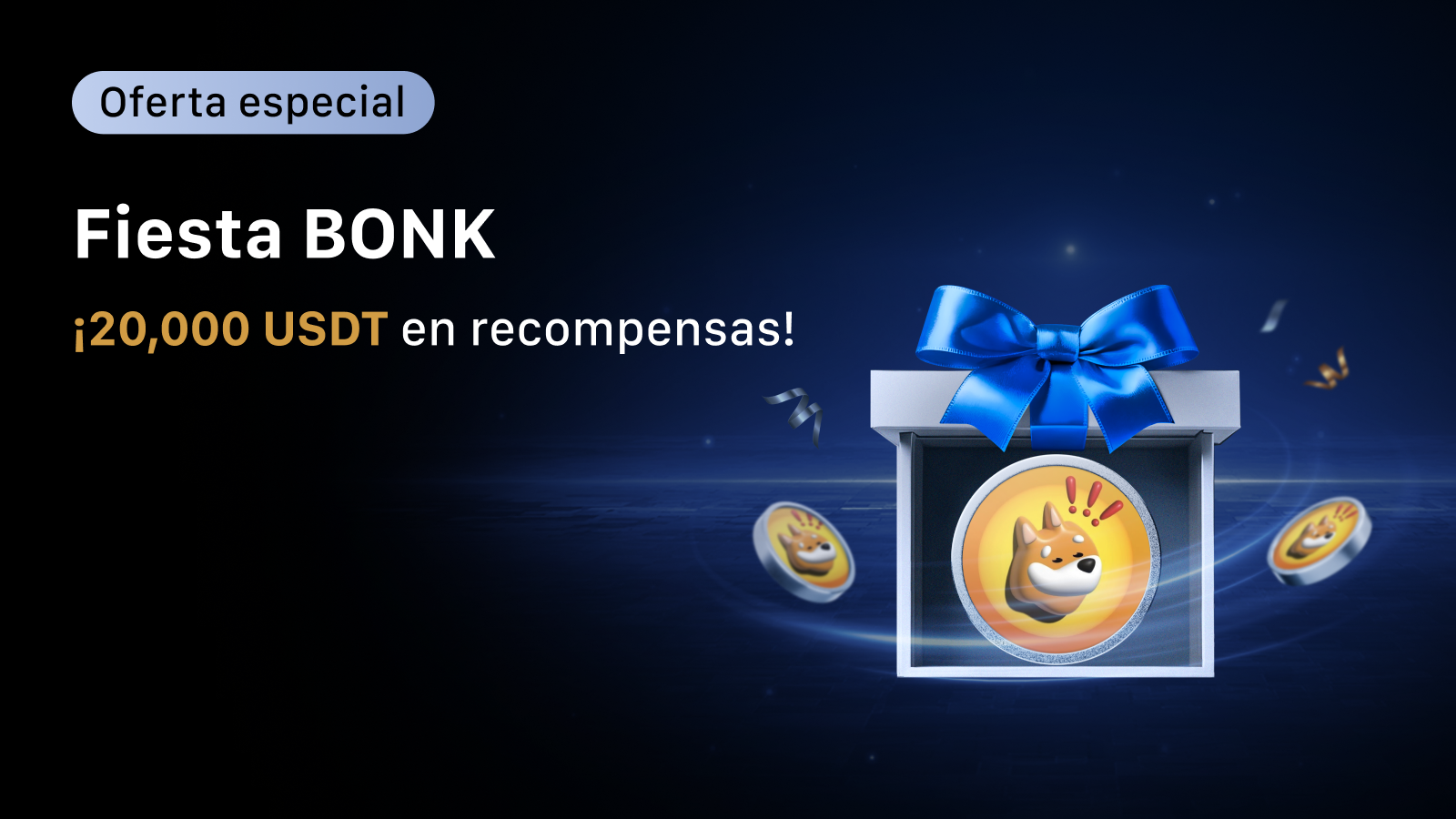 Consigue un volumen de trading spot de BONK/USDT de al menos 100 USDT y holdea un total en spot de al menos 100 USDT en cualquier token al final del evento para obtener 10 USDT. Las recompensas están limitadas a 500 usuarios y se asignarán por orden de llegada.