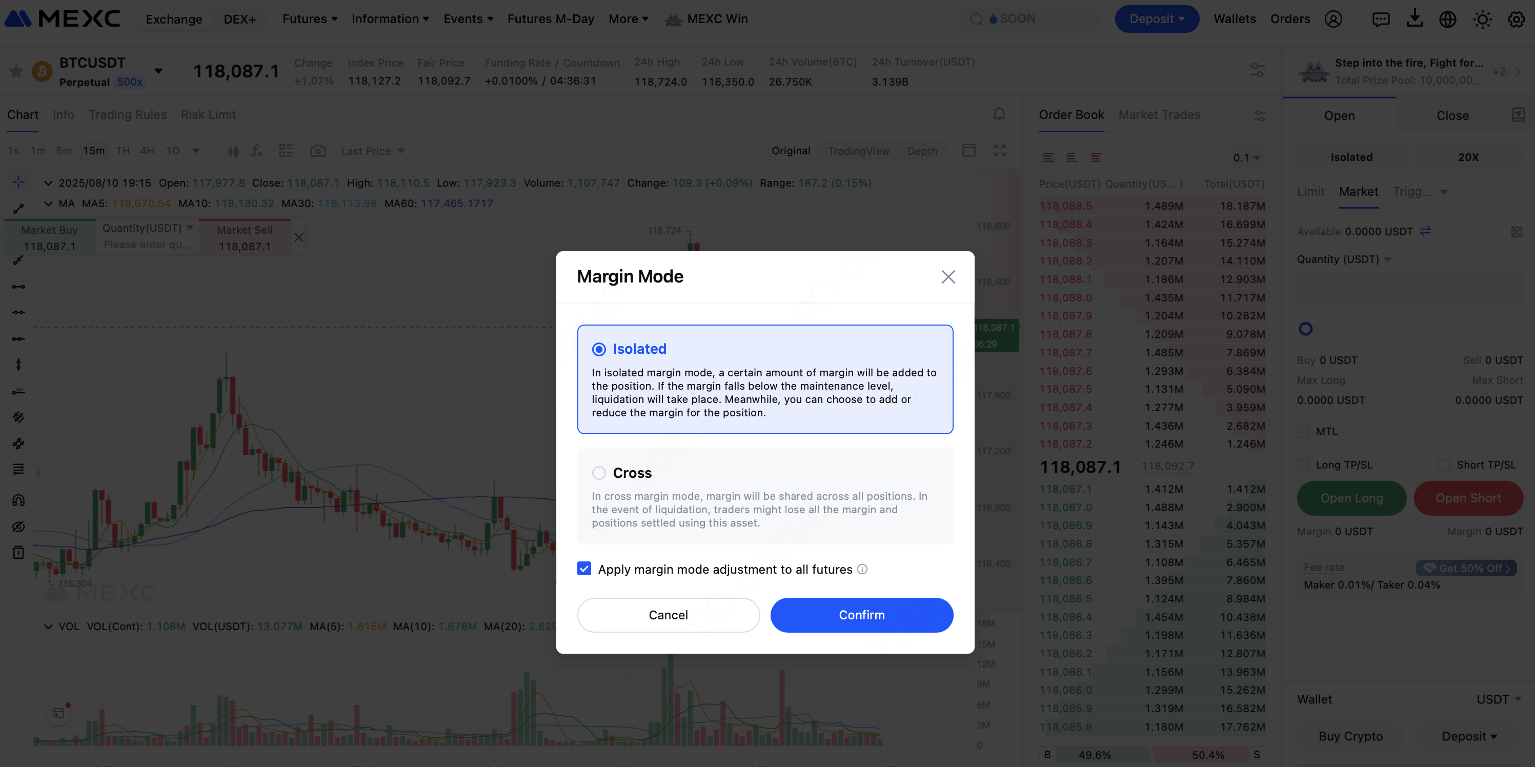 برای مثال، در معاملات BTCUSDT، پلتفرم MEXC لوریج تا سقف 500x برابر را ارائه میدهد. با این حال، برای افراد تازهوارد، شروع با لوریج های پایین تر مانند 2× یا 5× باعث میشود روند یادگیری روانتر باشد و معامله گر پیش از افزایش حجم موقعیت، شناخت بهتری از رفتار بازار به دست آورد.
