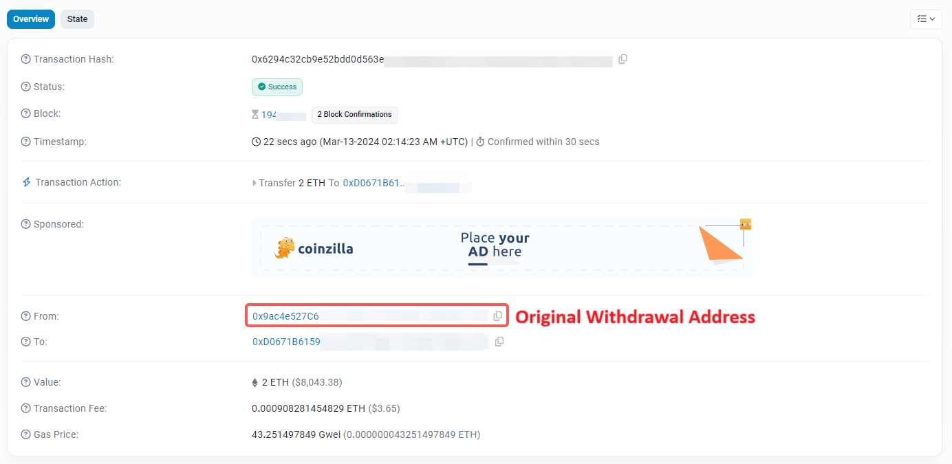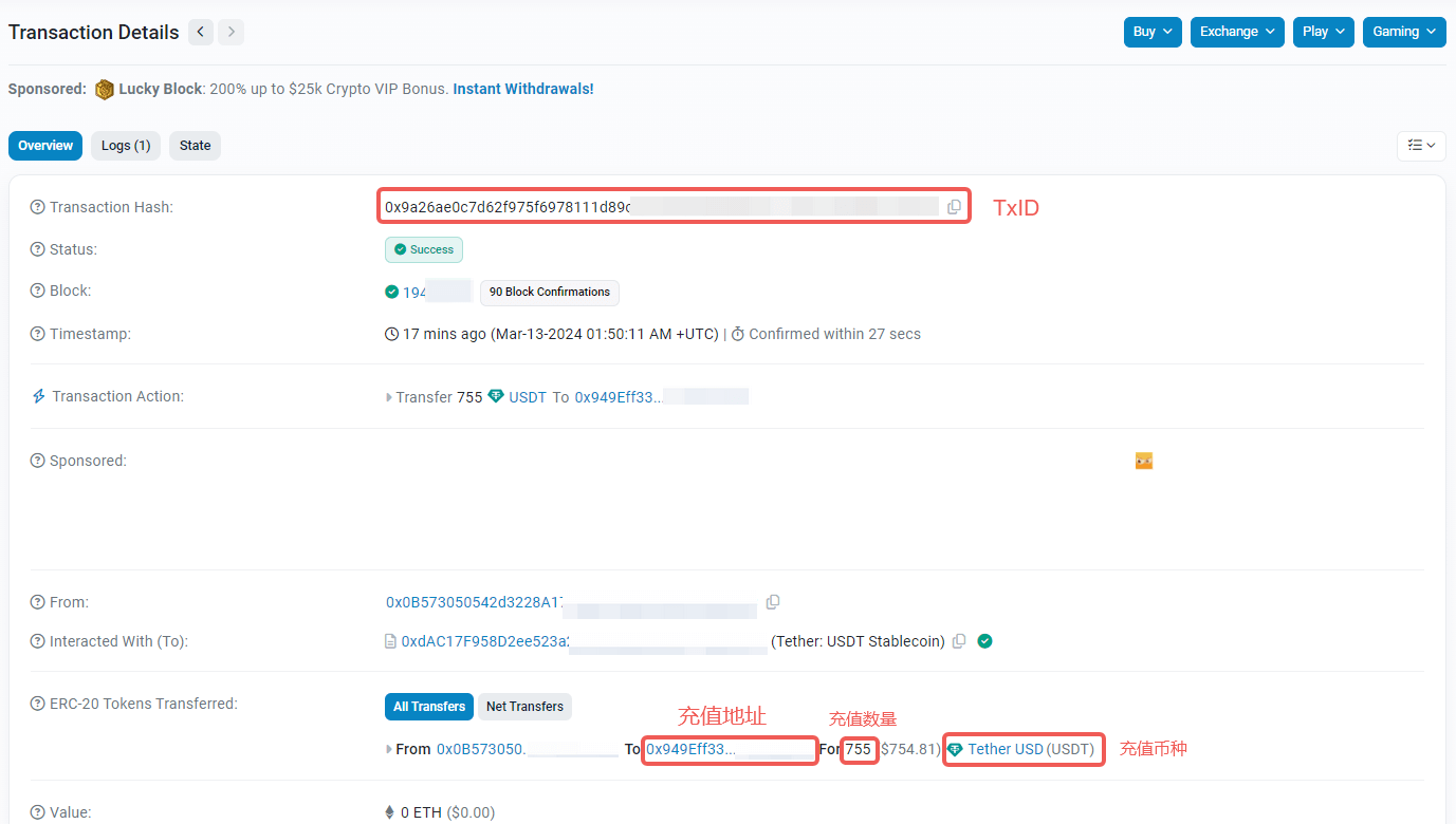 - Deposit TxID: The TxID/TxHash is the unique identification proof of this deposit on the blockchain. You can view and copy this TxID string from the withdrawal record on the withdrawal platform or wallet.
