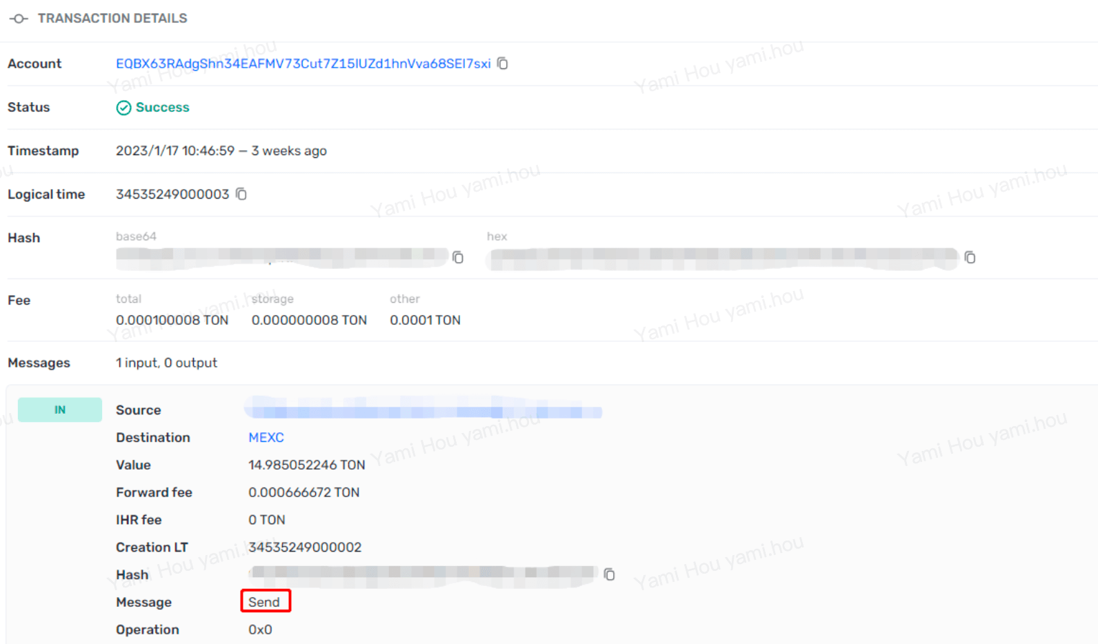 Case A: User incorrectly wrote "Send" in the Memo/Tag field of a TON deposit.