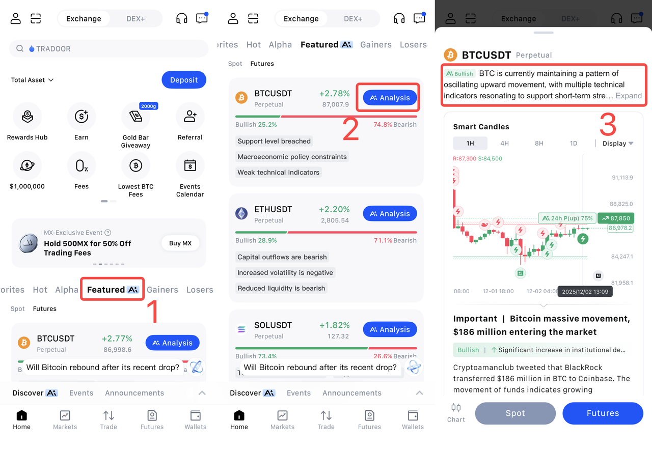 Gumagamit ang MEXC ng cutting-edge na mga feature ng AI upang tulungan kang suriin ang mga trend ng merkado nang siyentipiko at i-optimize ang iyong estratehiya sa paglalaan ng asset. Sinisiyasat ng gabay na ito ang dalawang makapangyarihang tool: Solid Candles at Ahente ng AI.