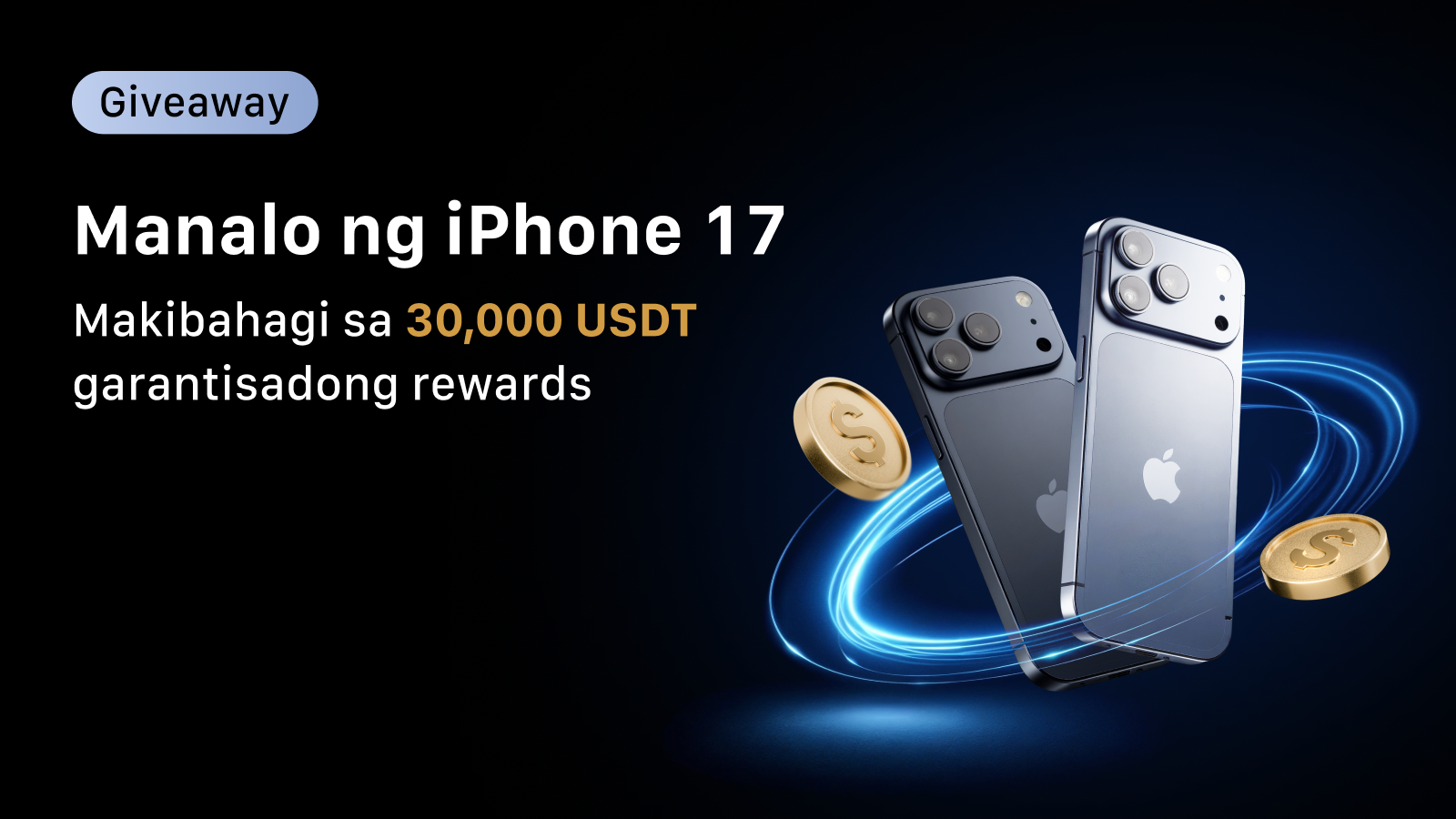 • 100% Lucky Draw rewards ay ipapamahagi sa loob ng 10 araw ng negosyo pagkatapos ng event. Ang premyo ng iPhone 17, na limitado sa 1 unit para sa event na ito, ay iko-convert sa USDT na katumbas ng halaga, na tinatayang nasa humigit-kumulang 1,500 USDT. Ang mga reward sa token ay i-airdrop sa mga Spot wallet ng mga user, habang ang mga bonus ay iki-credit sa mga Futures wallet ng mga user.