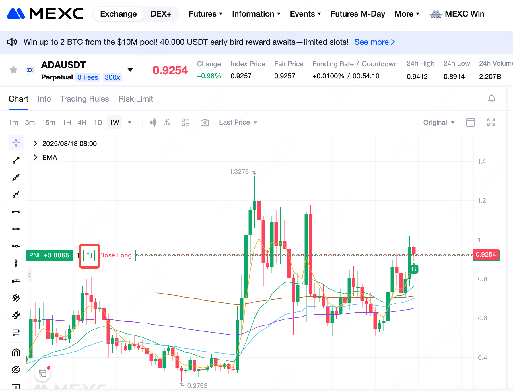 Sa cryptocurrency futures trading, ang mga oportunidad ay madalas na mabilis lumitaw at mawala. Maraming investor ang umaasang makapagbukas o makapagsara ng positions nang direkta sa candlestick chart habang sinusuri ang galaw ng presyo upang masakyan ang pagbabago sa merkado. Upang matugunan ang pangangailangang ito, sinusuportahan na ngayon ng MEXC Futures ang pag-trade nang direkta mula sa candlestick chart. Ang artikulong ito ay gagabay sa iyo sa proseso. Sa kasalukuyan, ang candlestick chart trading ay suportado lamang sa web version. Ang artikulong ito ay gumagamit ng USDT-M Futures web interface bilang halimbawa para sa demonstrasyon.