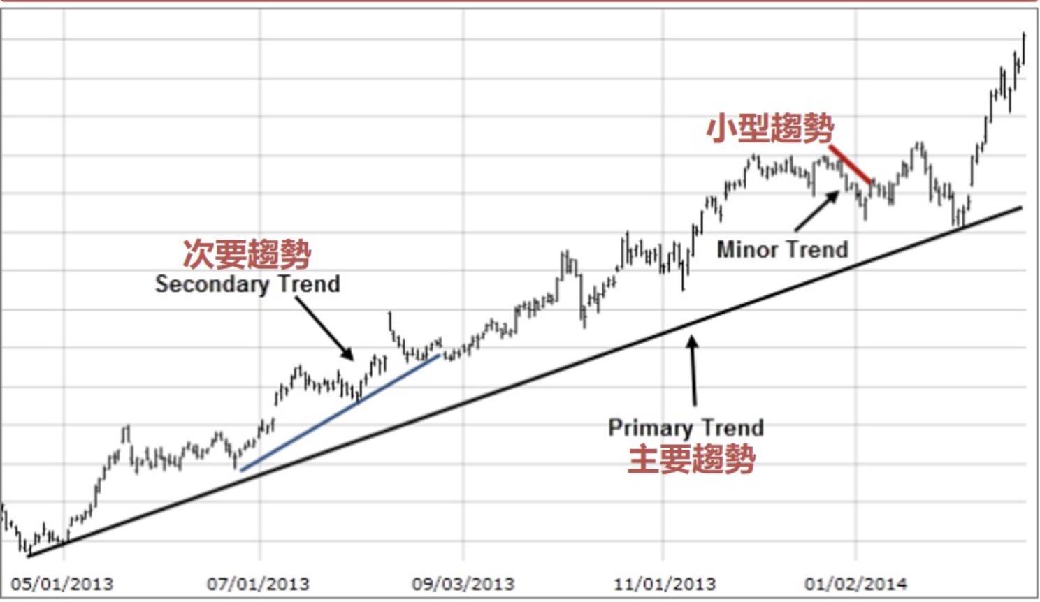 1) Pangunahing Trend (Primary Trend): Tumataagal ng isang taon o higit pa, at maaaring maging bullish, bearish, o isang yugto ng sideways consolidation.
