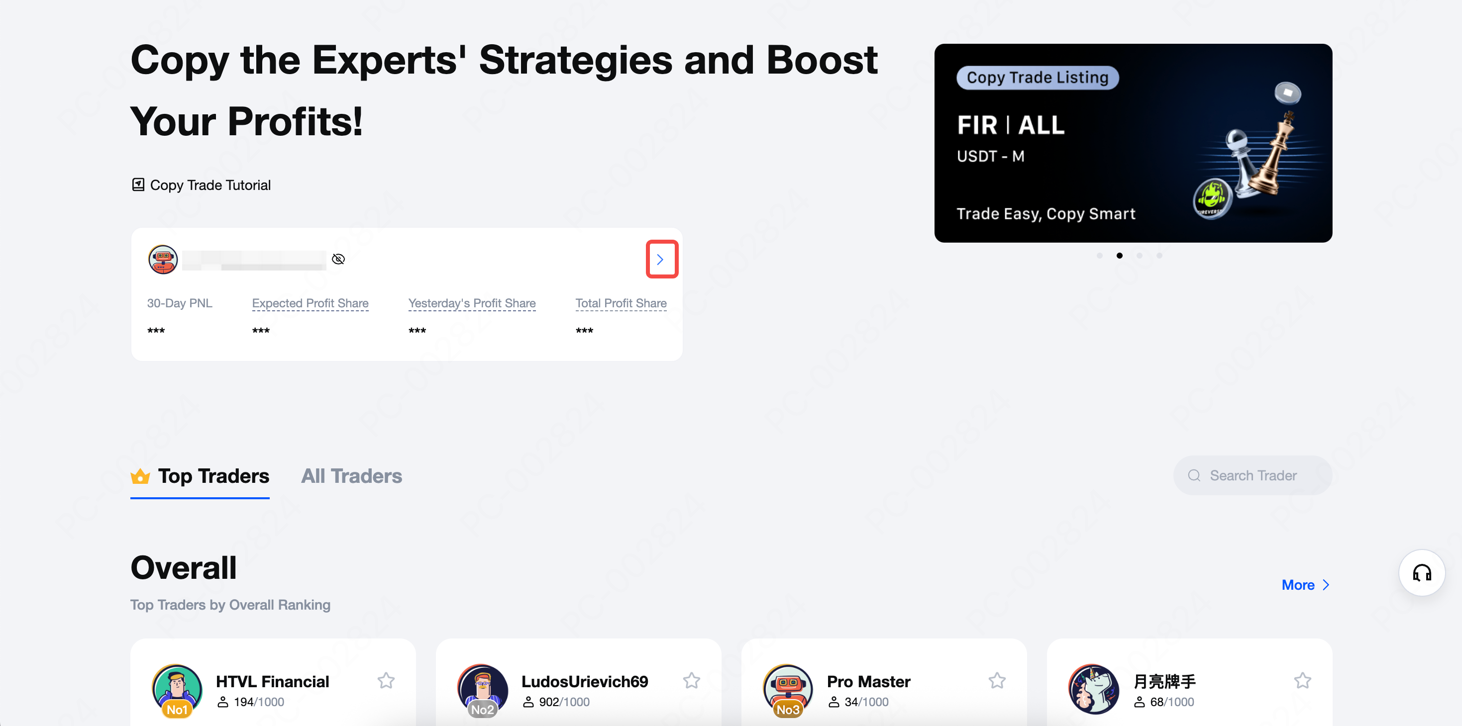 Pagkatapos maging isang copy trader, pumunta sa copy trading page, at i-click ang > icon para ma-access ang iyong personal na copy trading page.