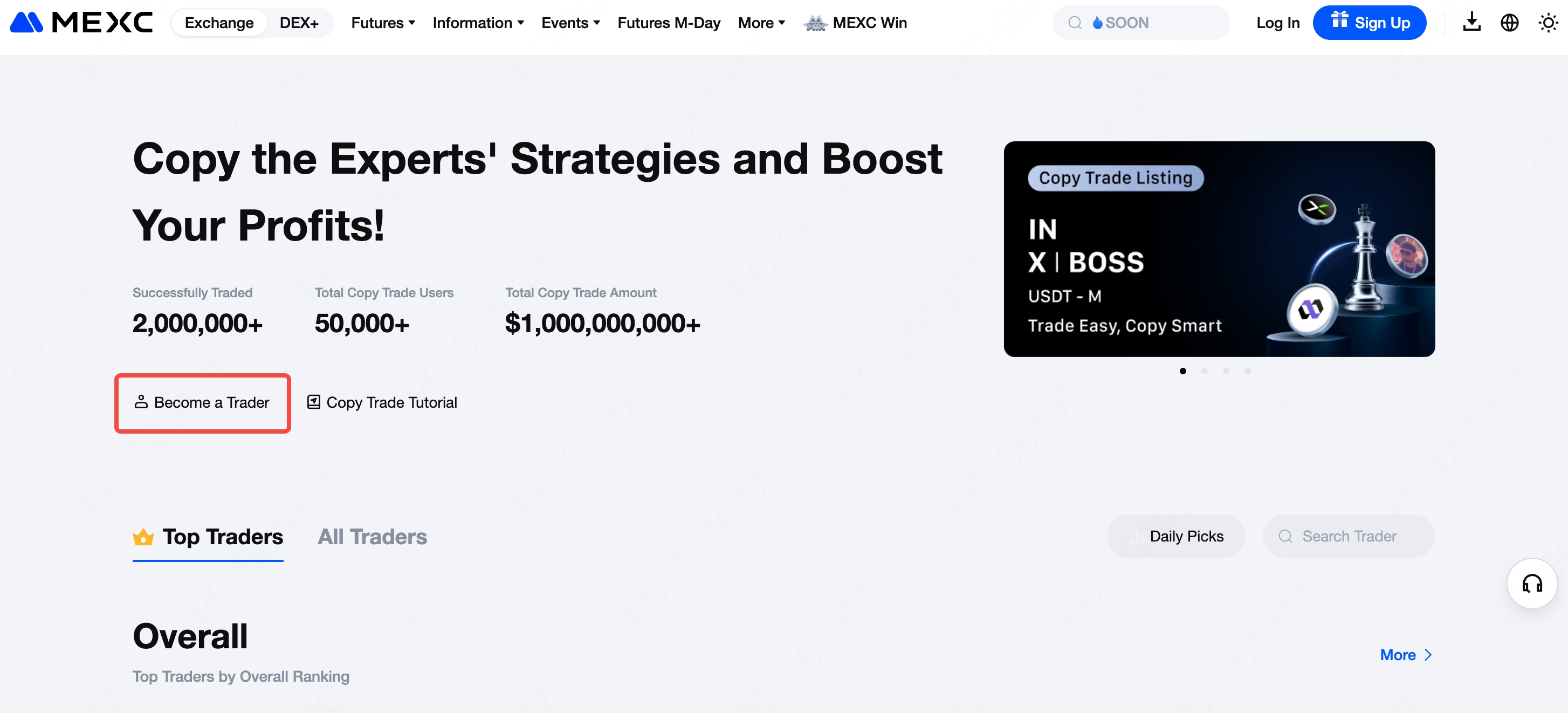 Kapag nasa pahina ng Copy Trade, i-click ang Maging isang Trader.