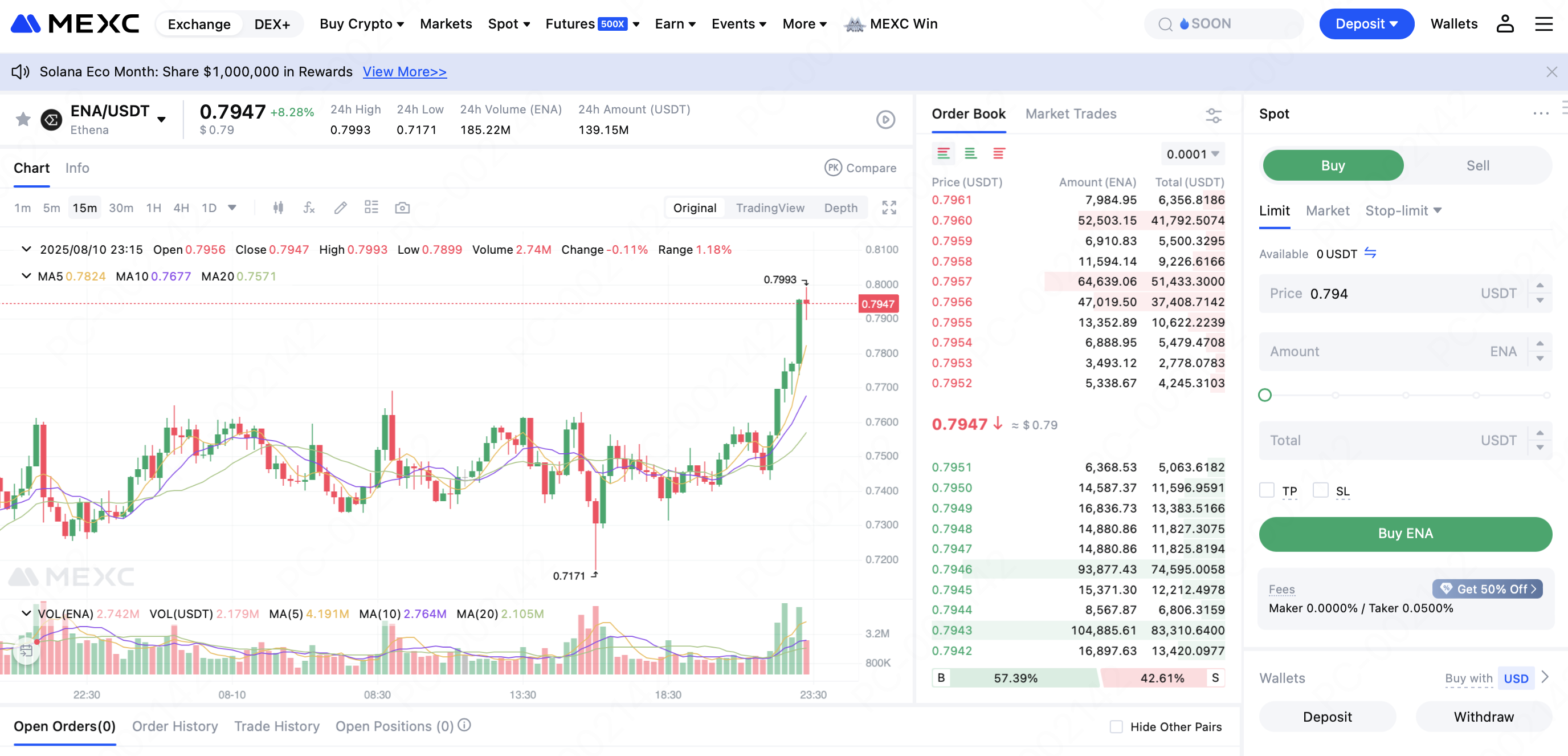 Noong tag-init ng 2025, minarkahan ng ENA ang kanyang breakout moment. Mula unang bahagi ng Hulyo, nanatili ang token sa matatag na pataas na trajectory, at mabilis na naging isa sa mga nangungunang asset sa hanay ng 100 pinakamalalaking cryptocurrency batay sa market capitalization. Pagsapit ng huling bahagi ng Hulyo, lalo pang lumakas ang rally ng ENA, tuluyang nabasag ang $0.70 na marka at nagtala ng bagong pinakamataas na presyo para sa taon.