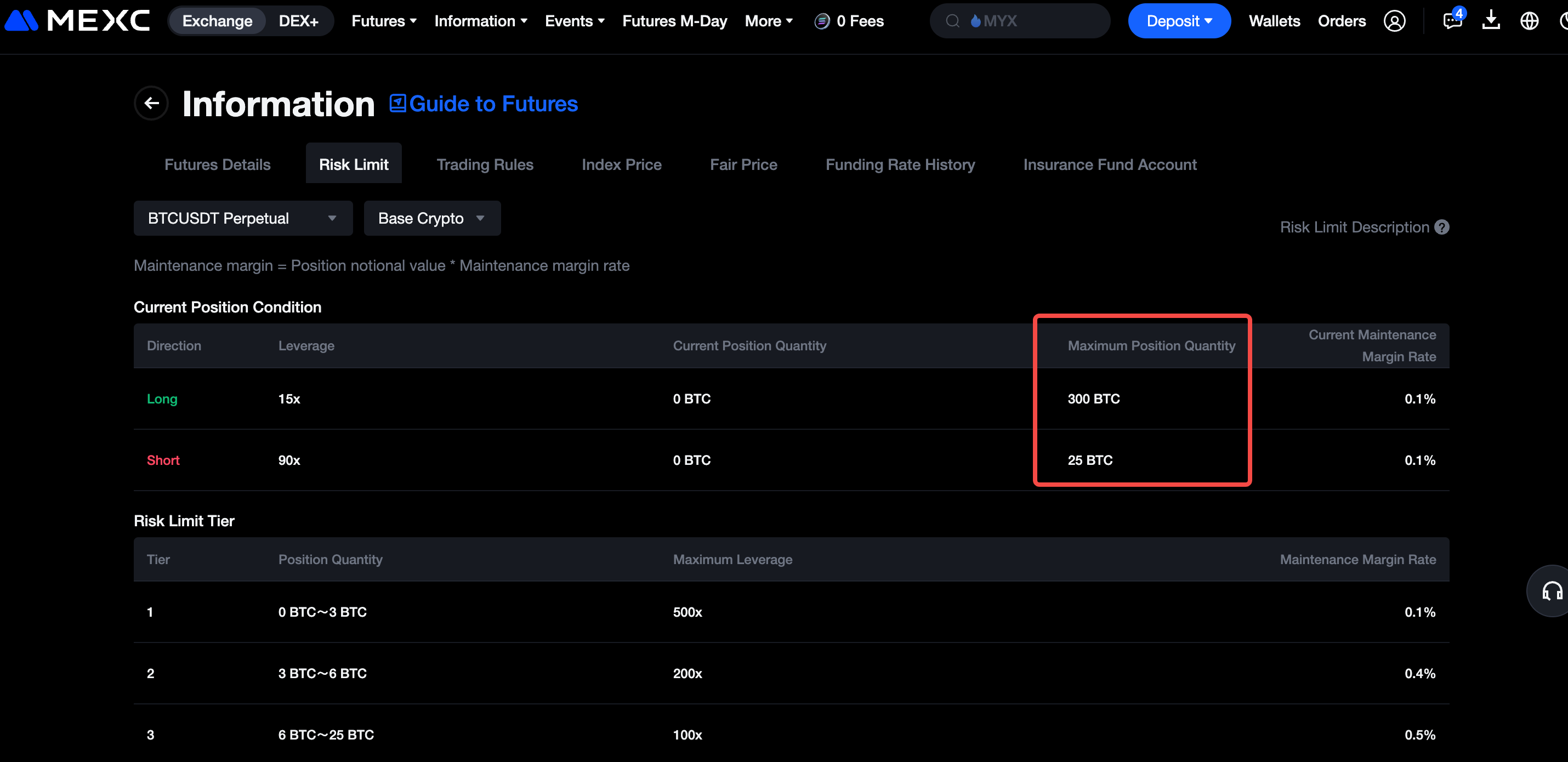 Para sa mga detalyadong panuntunan, mangyaring sumangguni sa opisyal na dokumentasyon ng MEXC sa Futures Trading Risk Limits.