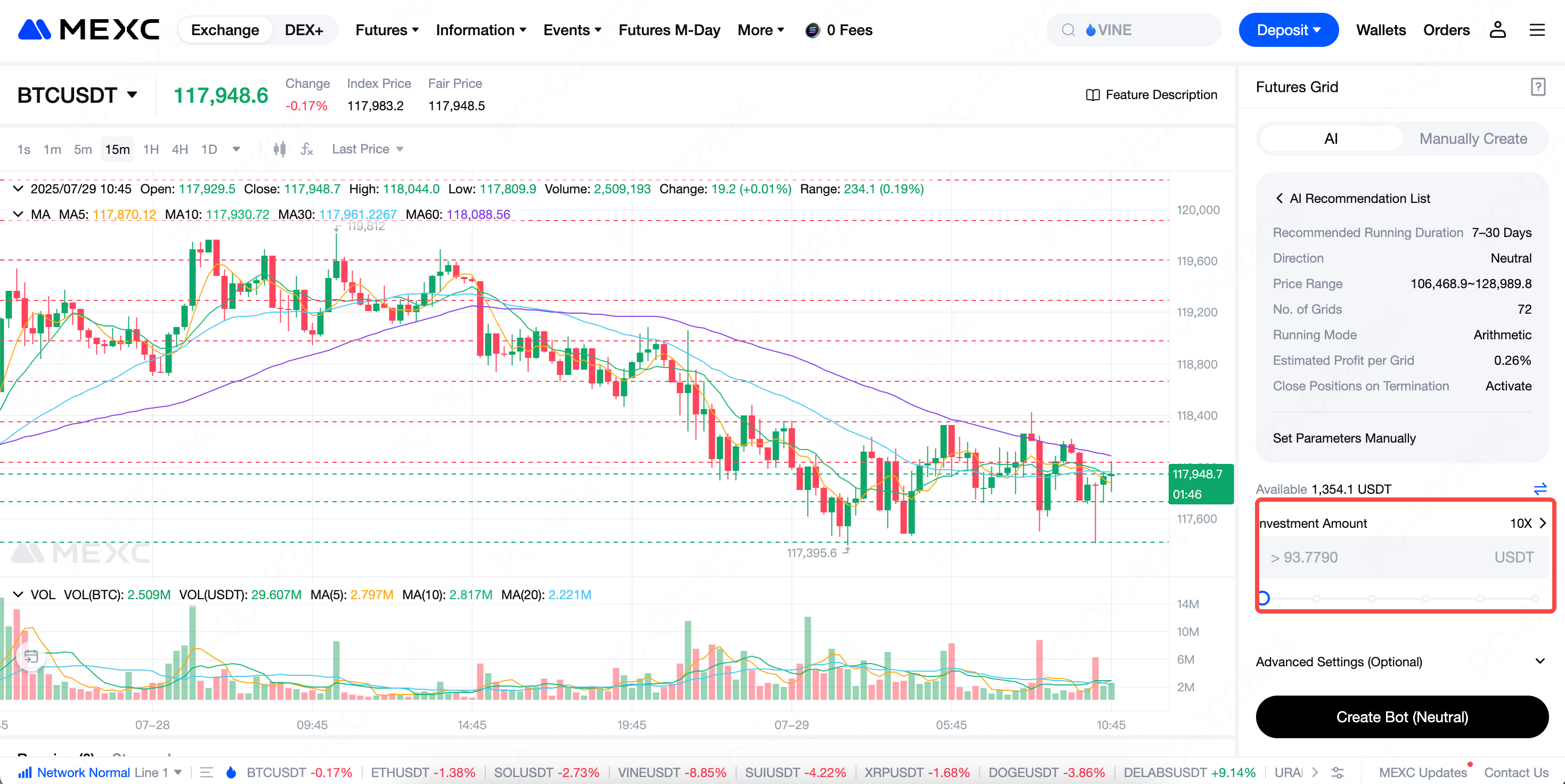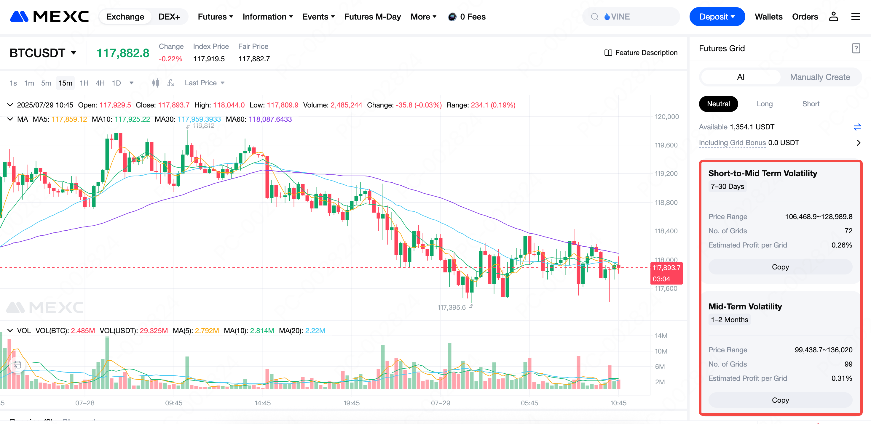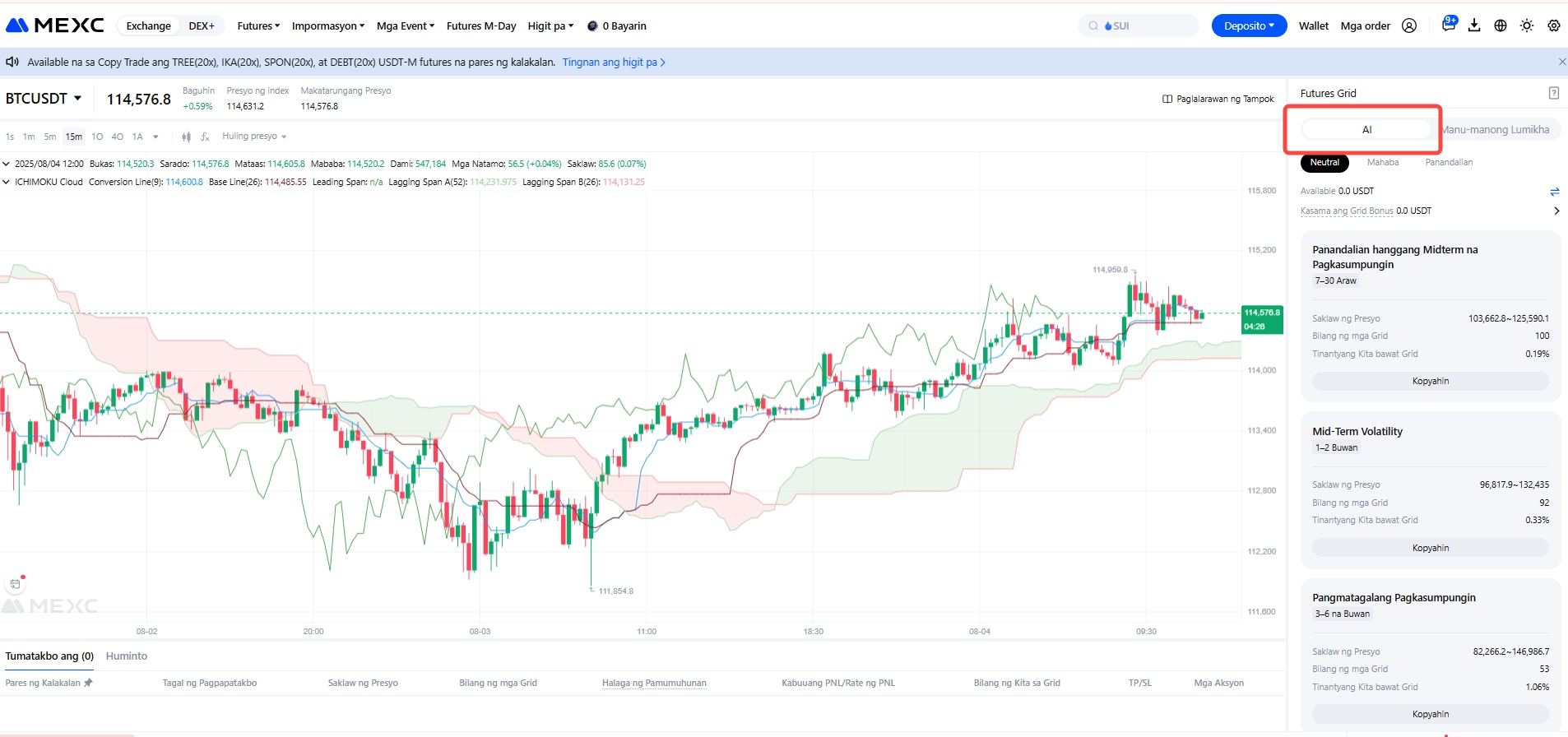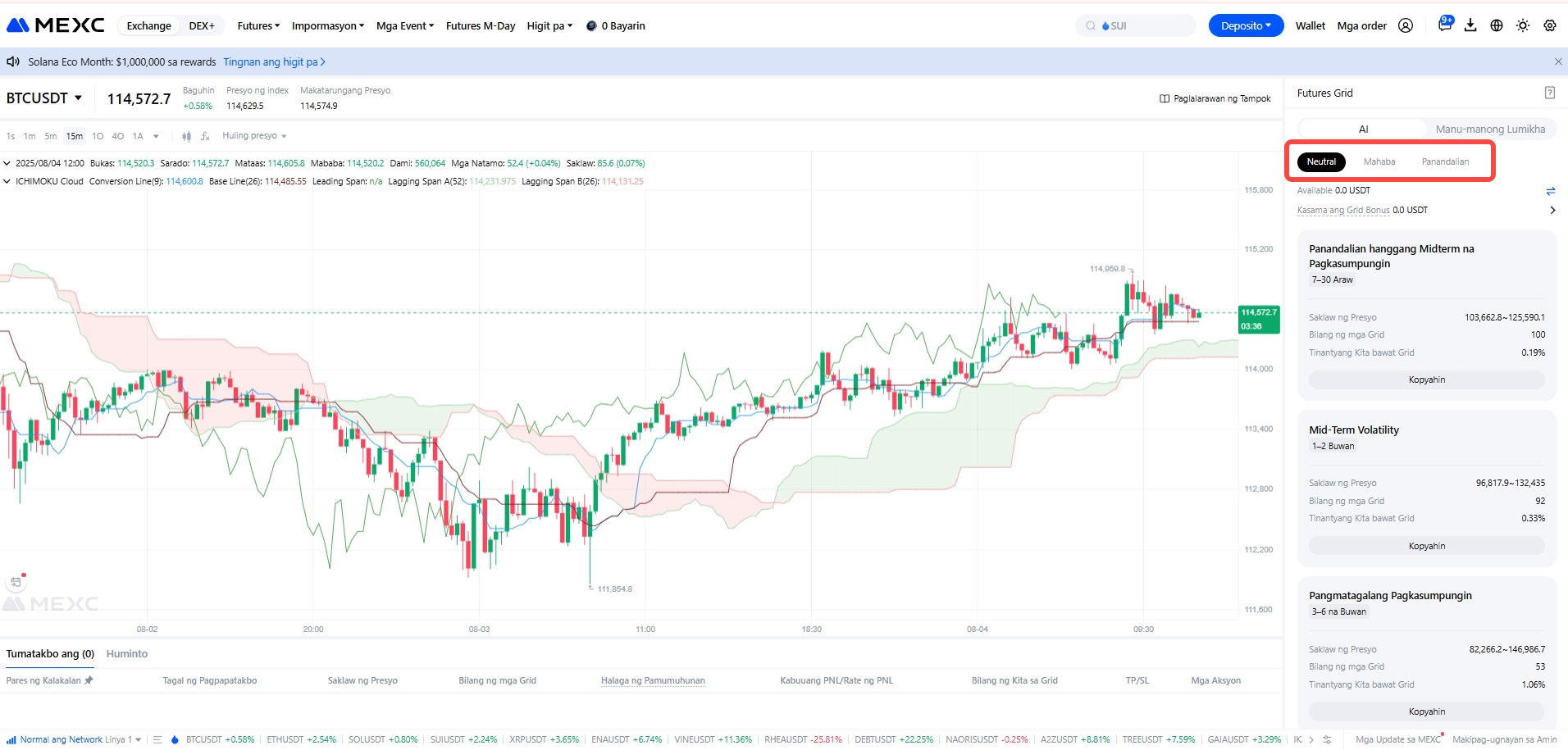 Ang grid trading ay isang quantitative at automated na estratehiya sa pangangalakal. Para sa isang detalyadong panimula at gabay sa gumagamit, maaari kang sumangguni sa "Ano ang MEXC Futures Grid Trading?"