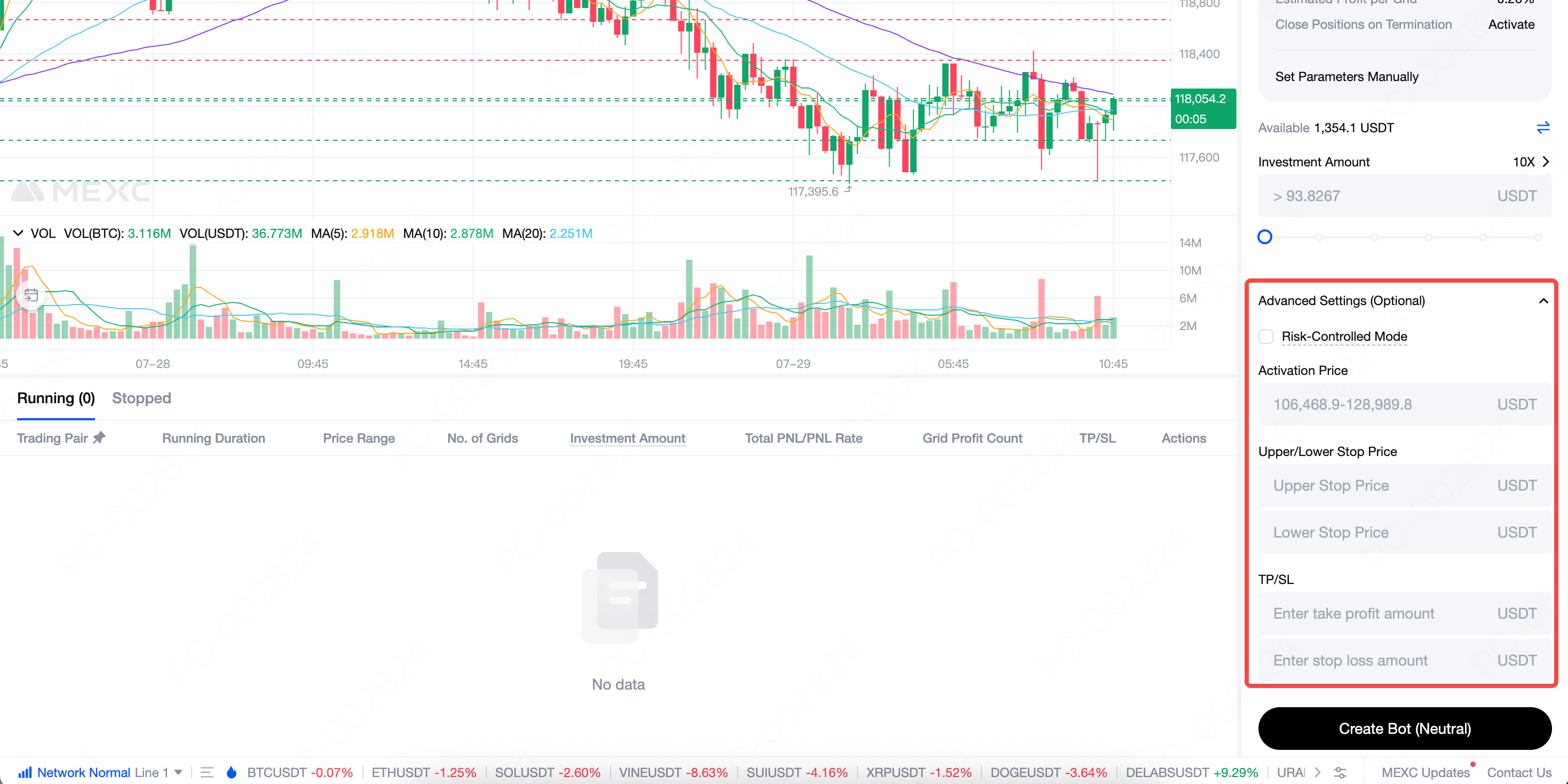 Risk-Controlled Mode: Paganahin ito upang mabawasan ang panganib ng liquidation sa panahon ng pagpapatakbo ng bot.