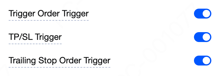 Kapag pinagana para sa mga trigger order, TP/SL order, o trailing stop order, aabisuhan ka ng platform kung matagumpay na na-trigger o nabigo ang kaukulang order. Ang bawat isa ay maaaring mag-trigger ng hanggang 20 alerto bawat araw.