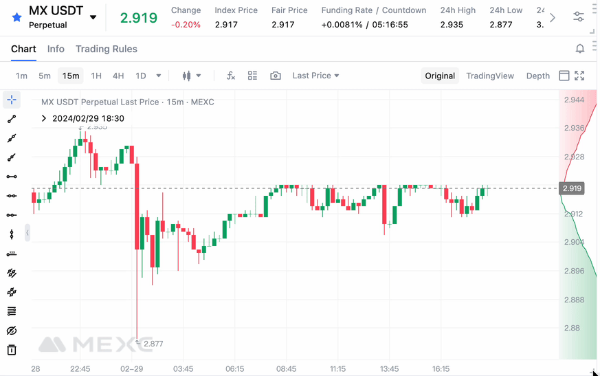 Binibigyang-daan ka ng MEXC Futures na mag-trade nang direkta sa candlestick chart, na tumutulong sa iyong mabilis na gumawa, magbago, at magkansela ng mga limit na order, pati na rin magtakda at mag-adjust ng market close, take-profit, at stop-loss na mga order. Maaari kang matuto nang higit pa tungkol sa feature na ito sa pamamagitan ng pagbabasa sa Paano Magsagawa ng Futures Trading Operations sa K-line Chart.