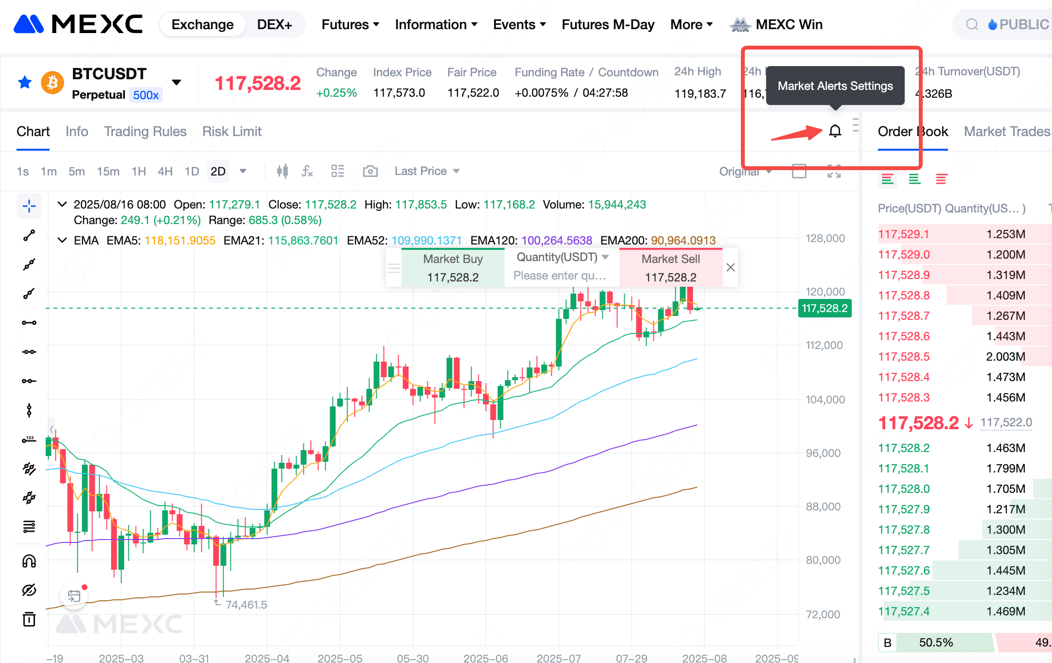 Sa mga susunod na seksyon, ipakikilala namin ang ilan sa mga pangunahing pantulong na function sa MEXC Futures trading page upang matulungan kang makapag-trade nang mas epektibo. Para sa mas malinaw na pagpapaliwanag, ipapakita namin ang mga feature na ito sa web version, bagaman karamihan ay available din sa app.