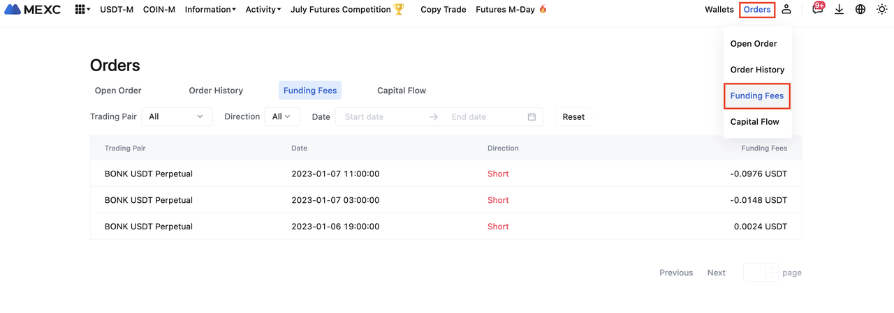 Nagbibigay ang MEXC ng maraming paraan upang subaybayan ang mga rate ng pagpopondo at ang epekto nito sa iyong mga posisyon: