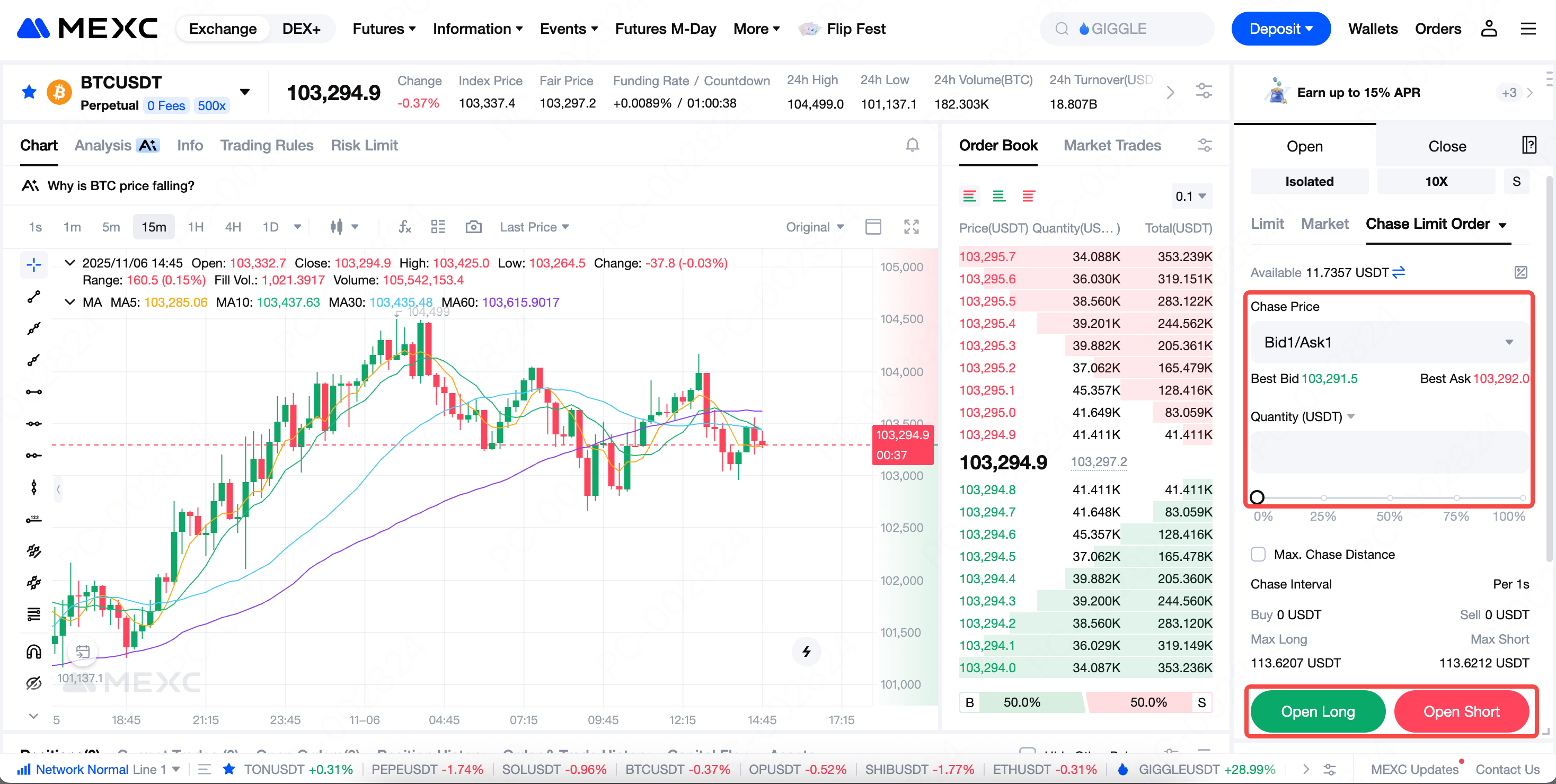 Index na Presyo:Kinakalkula ng MEXC batay sa mga presyo ng spot mula sa maraming nangungunang mga palitan, na may iba't ibang mga weighting na inilapat.