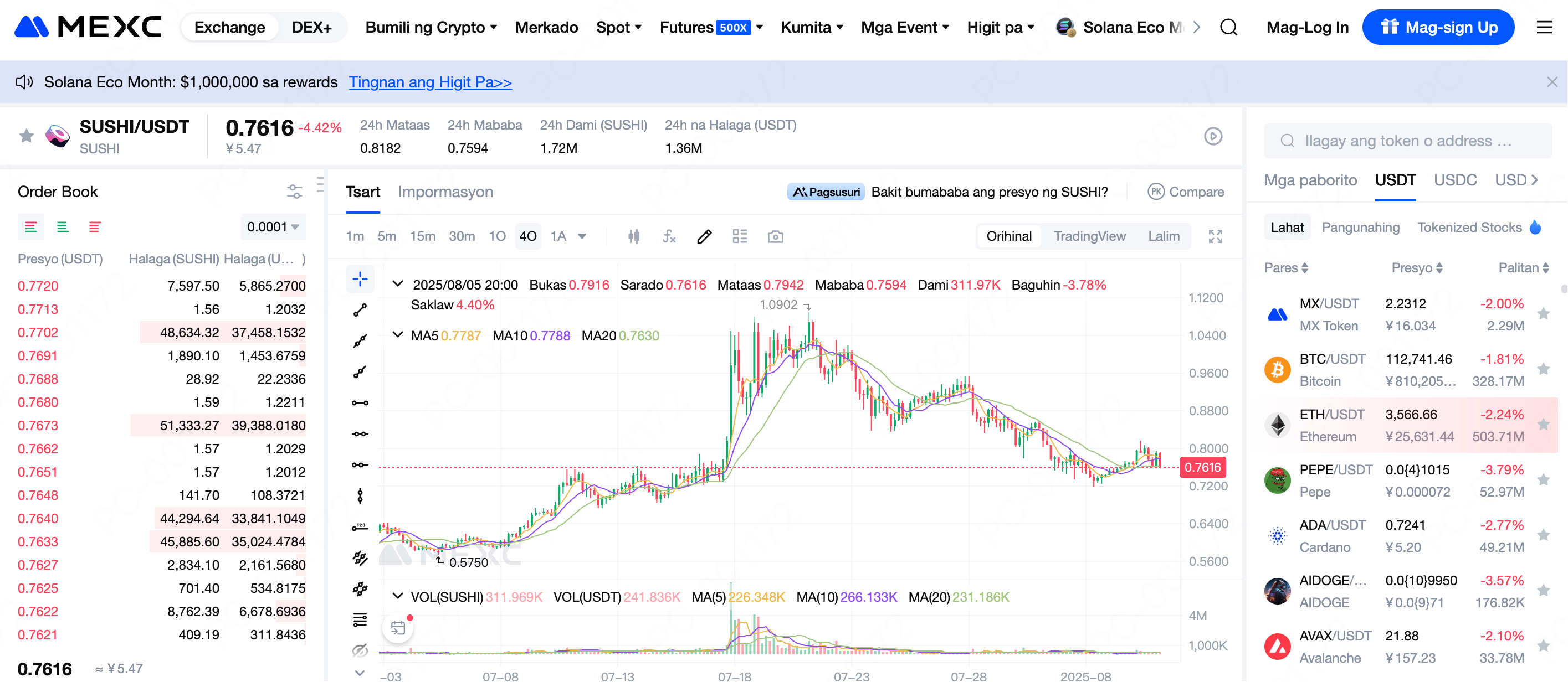 Noong Hulyo 2025, nasaksihan ng crypto market ang muling paglitaw ng volatility at momentum. Sa gitna ng iba't ibang macroeconomic factors at nagbabagong internal narratives, ilang dating "marginalized" na veteran DeFi protocols ang nagpakita ng malakas na pagbabalik, kung saan nangunguna ang SushiSwap at ang native token nitong SUSHI. Minsan nang nalampasan ng Uniswap, nagpakita ang SushiSwap ng hindi inaasahang paglakas ngayong buwan. Noong Hulyo 2025, nakaranas ng kapansin-pansing pagtaas ang SUSHI token, kung saan ang presyo nito ay umakyat mula sa humigit-kumulang $0.60 sa simula ng buwan patungo sa pinakamataas na humigit-kumulang $1.09. Kapansin-pansin din ang pagtaas ng aktibidad sa pag-trade, na nagpapahiwatig ng muling interes ng merkado sa matagal nang protocol.