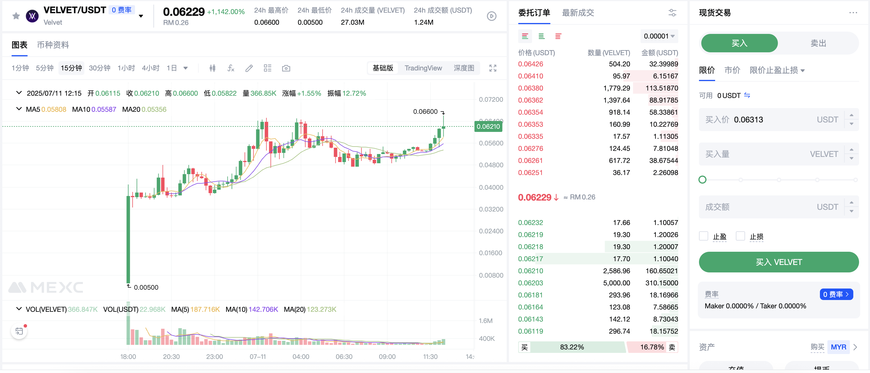 2) Maghanap ng "VELVET" sa search bar at piliin ang Spot o Futures trading. 3) Piliin ang iyong uri ng order, ilagay ang dami at mga detalye ng presyo, at kumpletuhin ang trade.
