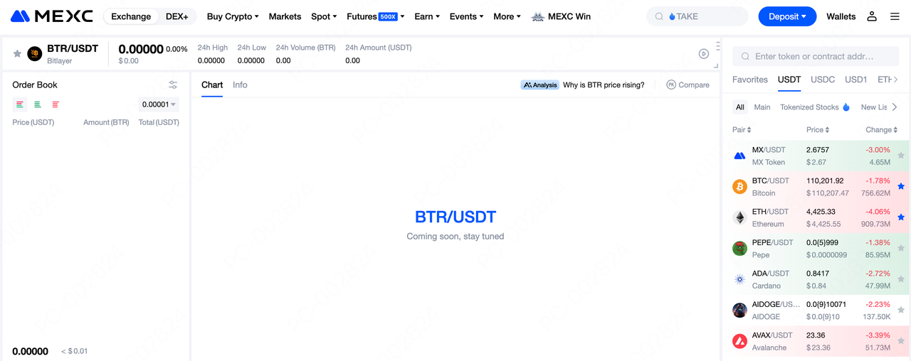 Bilang isang lubos na inaasahang bagong token, ang BTR ay hindi pa nakalista sa karamihan ng mga pangunahing exchange. Ang MEXC, isang platform na nakatuon sa pagtuklas ng mga de-kalidad na asset, ay nagbibigay sa mga user ng access sa mga sikat at umuusbong na mga token. Sa malawak nitong seleksyon ng mga asset, napakababang bayarin sa transaksyon, at ligtas, matatag na kapaligiran ng kalakalan, ang MEXC ay naging isang pinagkakatiwalaang pagpipilian sa mga user.