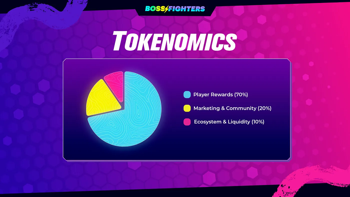Gumagamit ang Boss Fighters ng isang rebolusyonaryong patas na modelo ng pamamahagi ng token. Hindi tulad ng mga tradisyonal na laro, ang pamamahagi ng BFTOKEN ay ganap na nakatuon sa komunidad, na walang mga alokasyon na nakalaan para sa mga miyembro ng team, tagapayo, o venture capitalist. Tinitiyak ng diskarteng ito ang pagiging patas at pangmatagalang pananatili sa loob ng ekonomiya ng laro, habang pinapalaki ang mga benepisyo para sa mga manlalaro.
