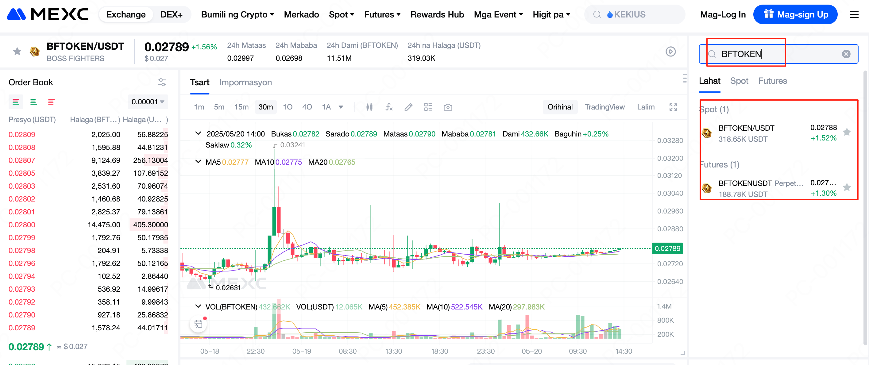 Sa kasalukuyan, ang BFTOKEN ay available para sa Spot at Futures trading sa MEXC. Maaari mong i-trade ang token sa napakababang bayarin sa pamamagitan ng pagsunod sa mga hakbang na ito: