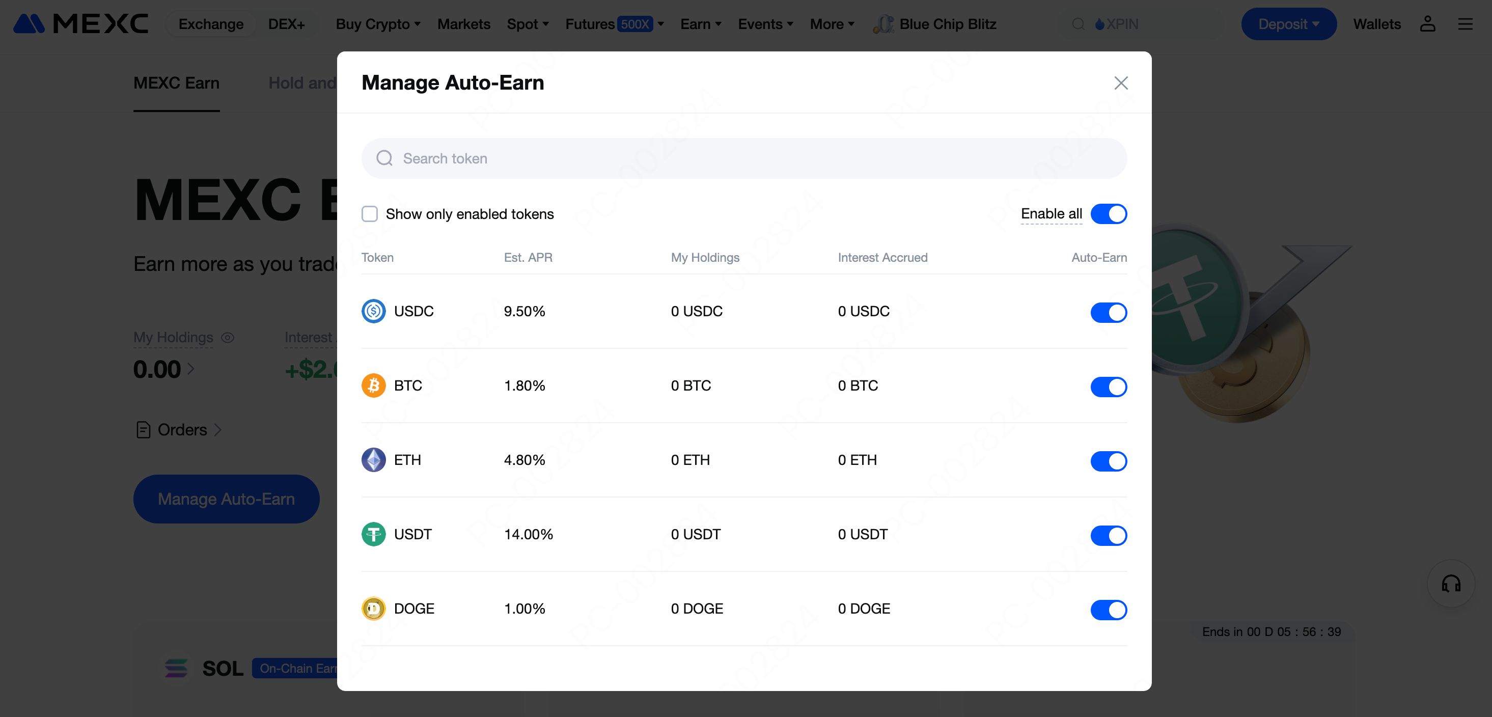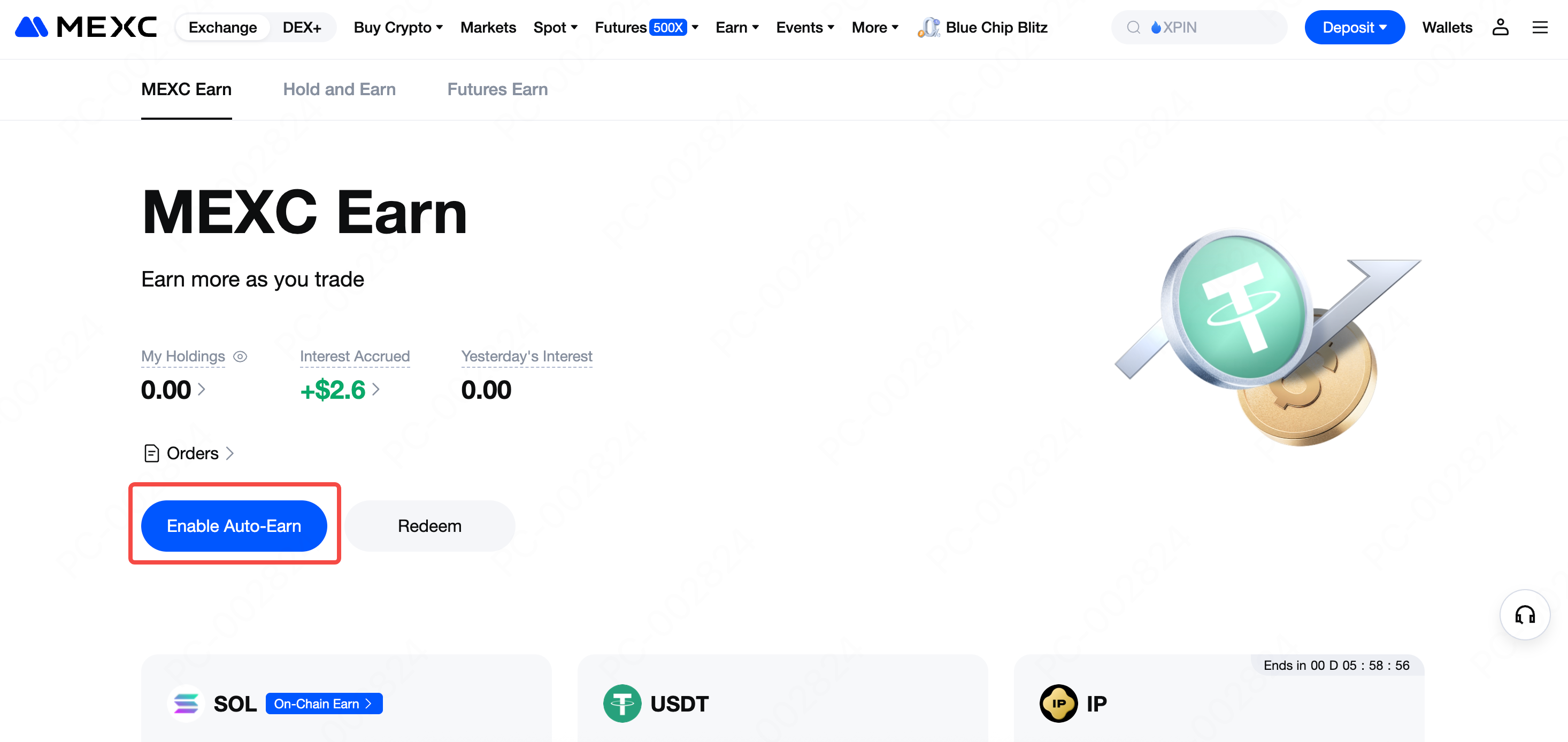 Sa pahina ng MEXC Earn, i-click ang Paganahin ang Auto-Earn.