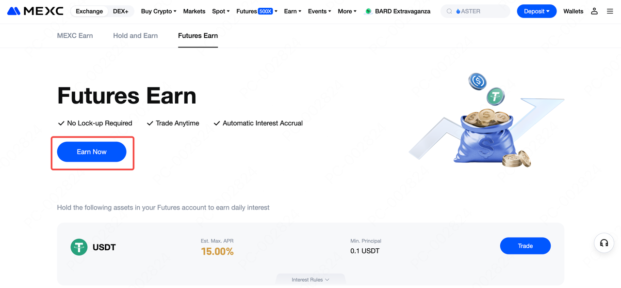 Sa pahina ng Futures Earn, i-click ang Kumita Ngayon.