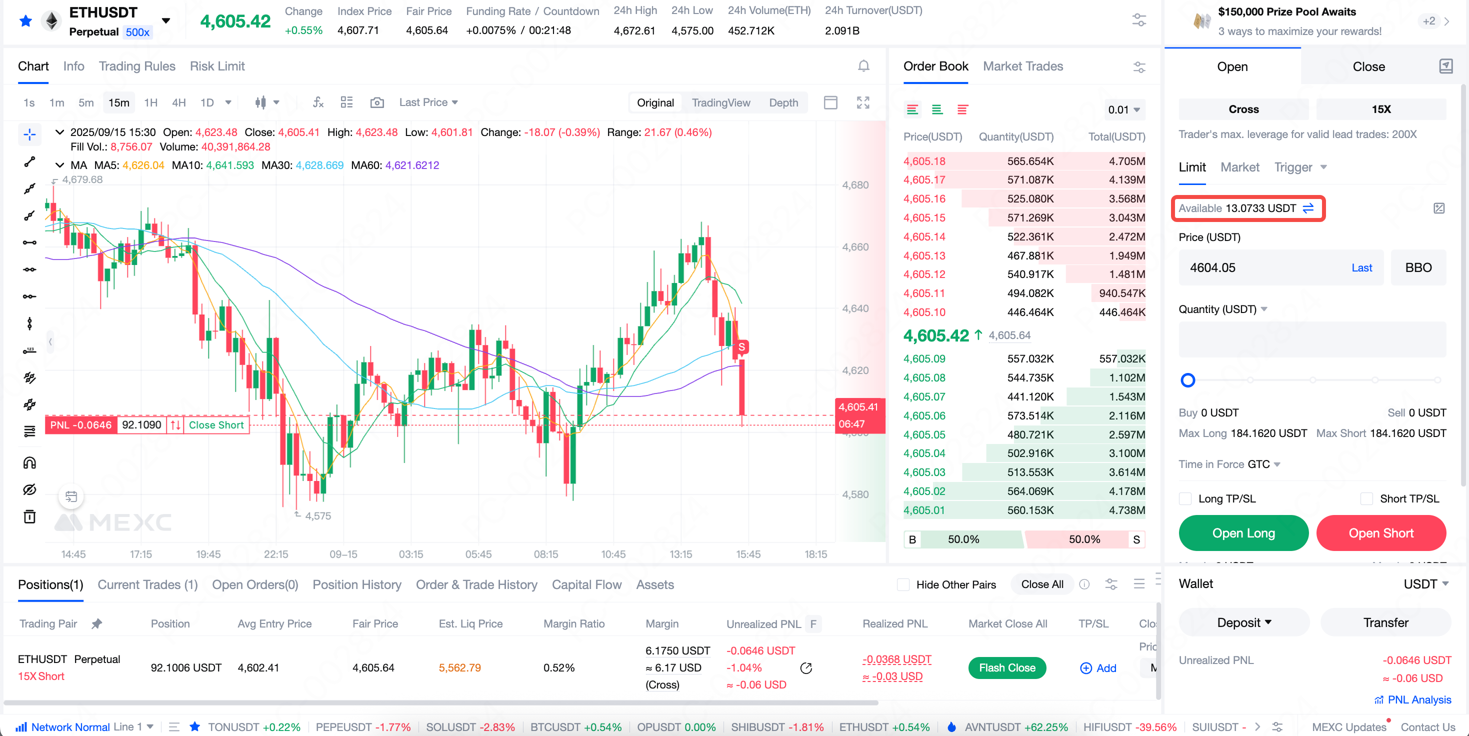 Buksan ang pahina ng MEXC Futures trading at piliin ang Cross Margin Mode. Habang tumataas ang hindi natanto na kita sa iyong mga posisyon sa cross margin, tataas din ang iyong magagamit na mga pondo.