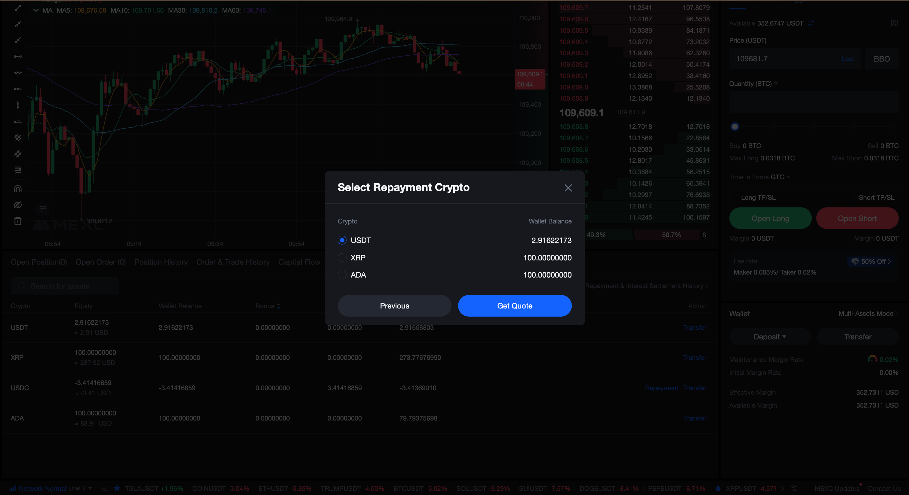 Tulad ng bersyon sa web, maaari mo ring ilipat ang inutang na asset sa iyong Futures account, na awtomatikong ilalapat sa pagbabayad.