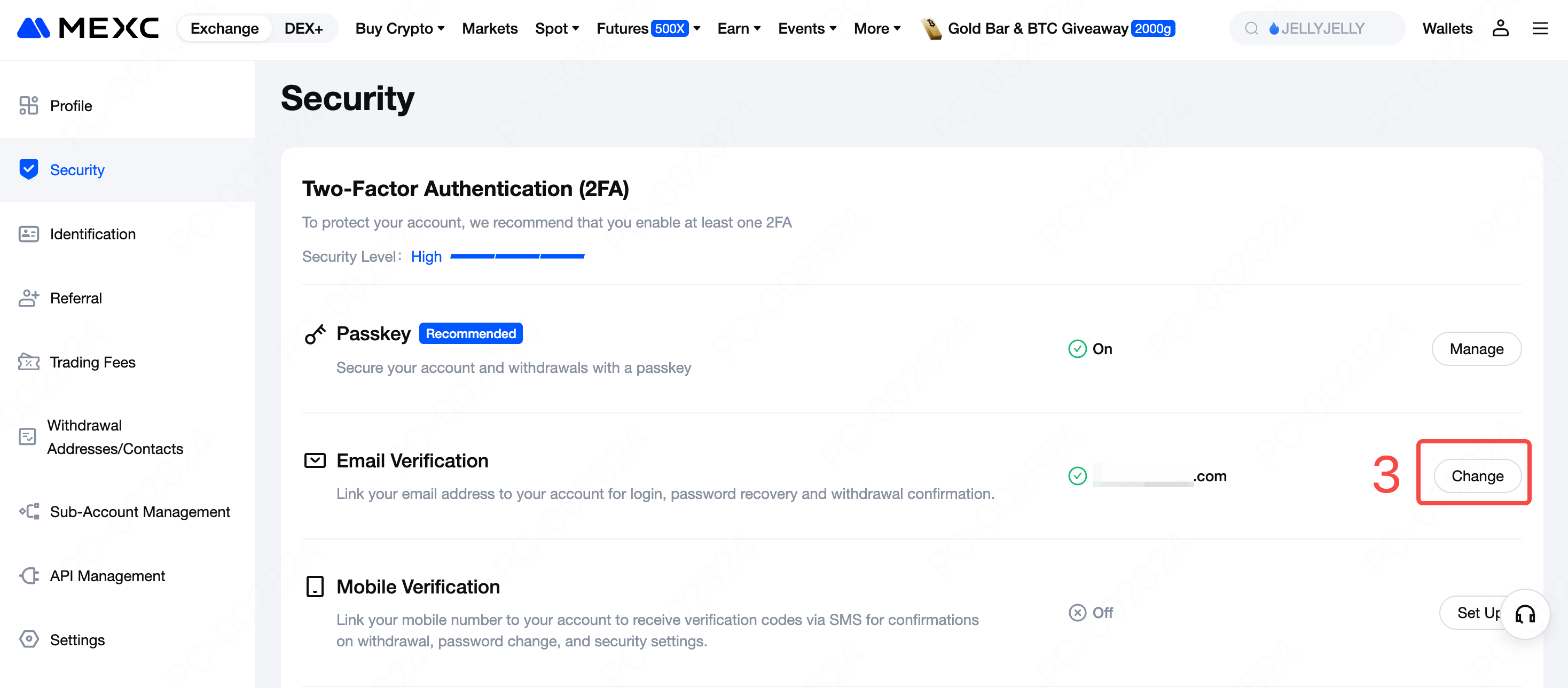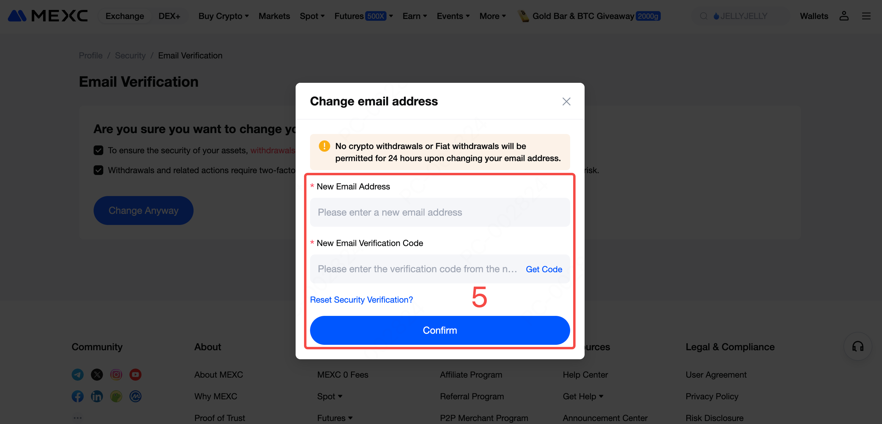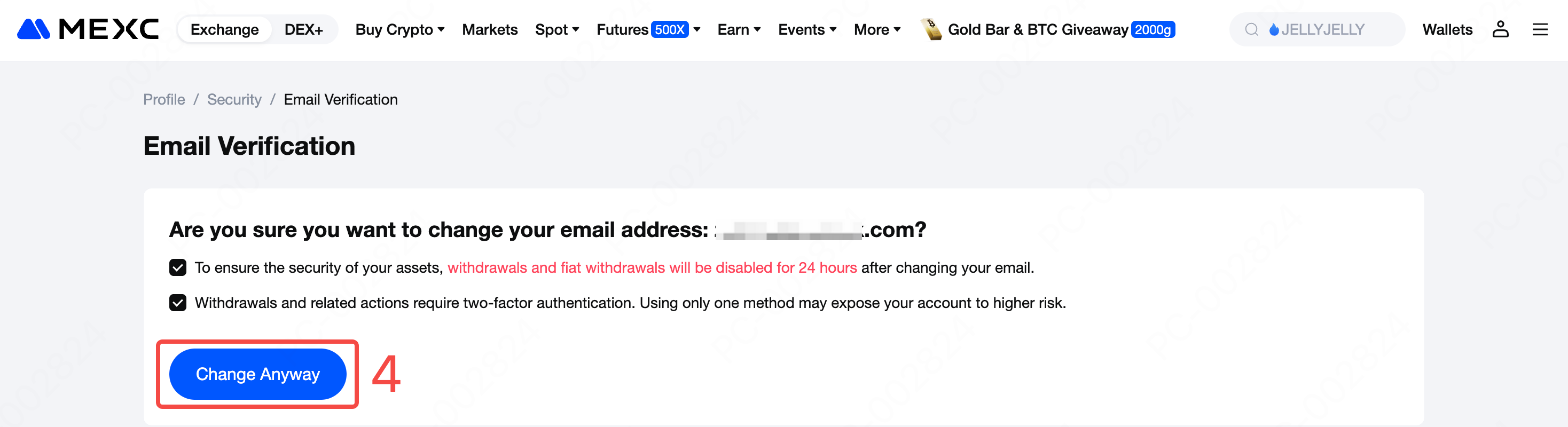 - Mahalagang paalala: Ang pag-withdraw ng crypto at fiat ay hindi magagamit sa loob ng 24 na oras pagkatapos magbago ang email.