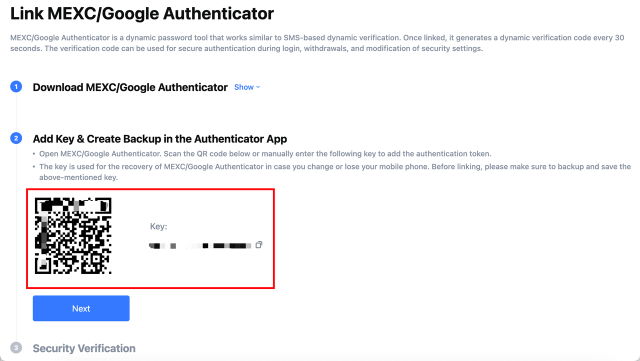 3) Kung na-install na ang Google Authenticator, i-click ang Susunod. Kung hindi, i-scan ang QR code sa pahina para i-download at i-install ang app.