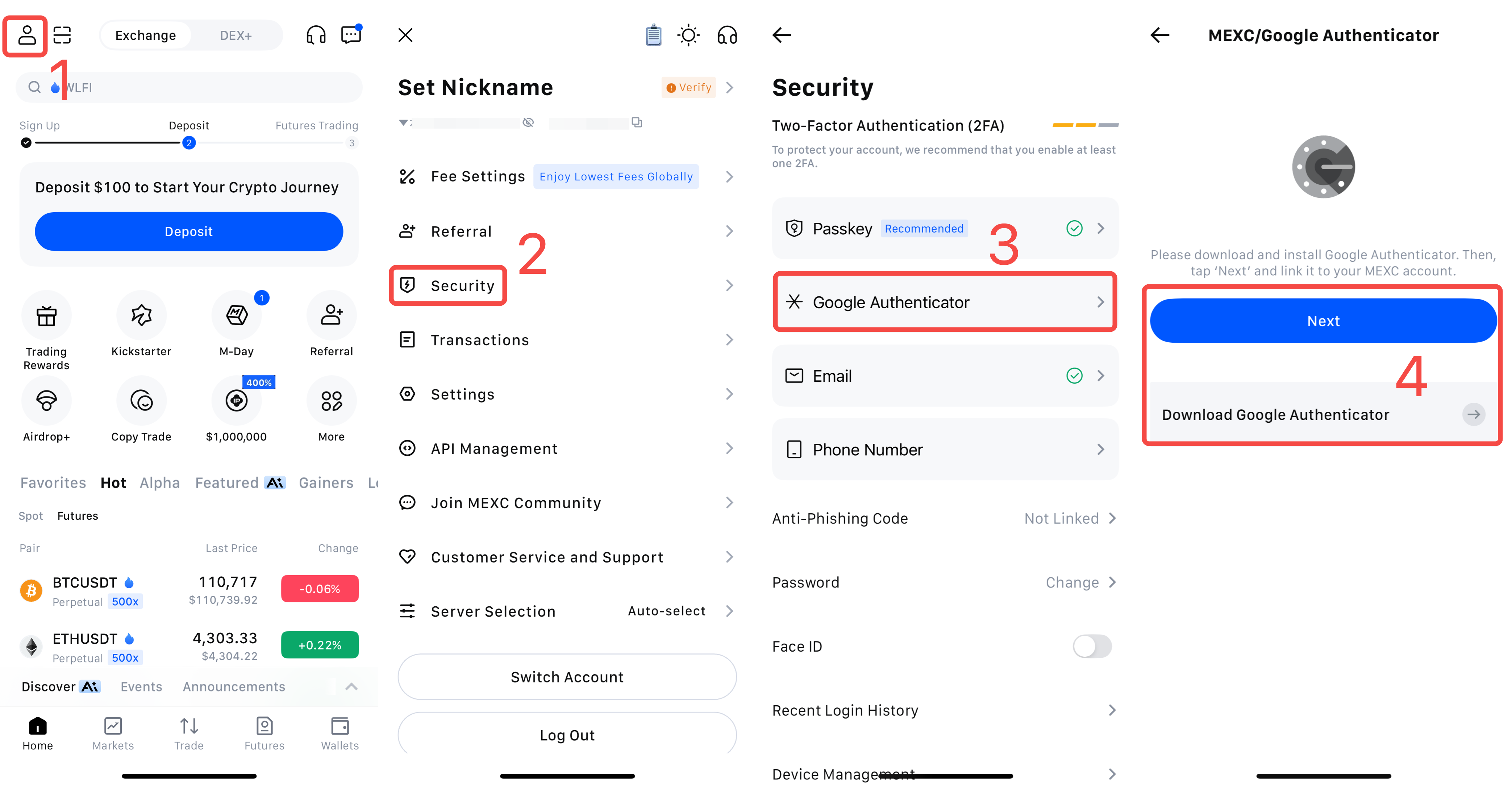 2) I-click ang Paganahin ang MEXC/Google Authentication.