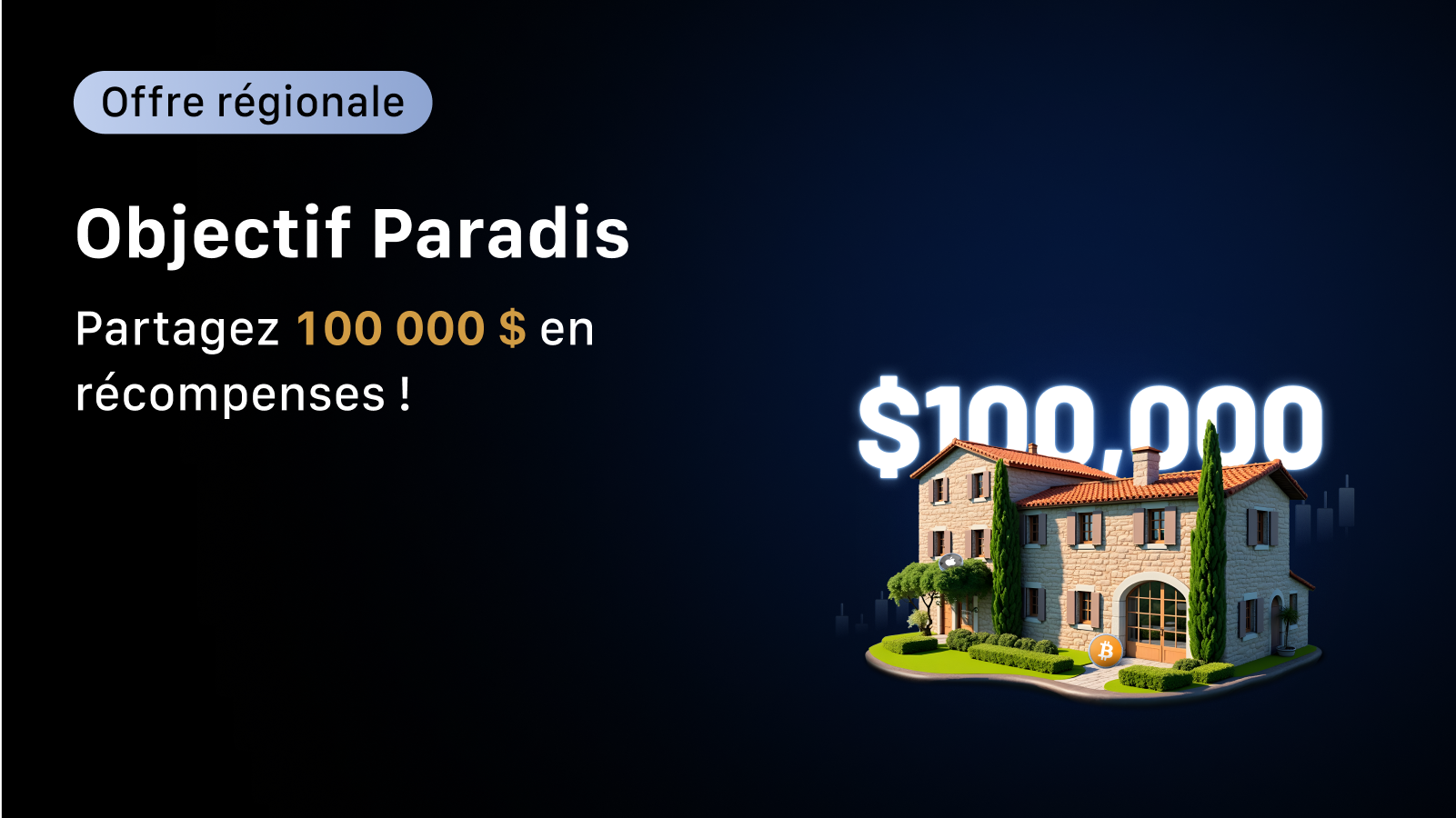 Préparez-vous à atteindre votre Objectif Paradis — car la haute saison des voyages mérite des récompenses à la hauteur ! Tradez des contrats à terme pour accumuler des points et tentez de remporter un séjour d'une semaine dans une villa de luxe en Europe, 4 000 USDT en fonds dédiés au trading d'actions, et plus encore — alors que les actions crypto montent en flèche.