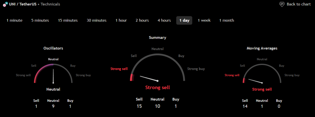 उपरोक्त चार्ट पर रीडिंग से, हम Uniswap (UNI) की मूल्य गति के संबंध में निम्नलिखित निष्कर्ष निकाल सकते हैं।