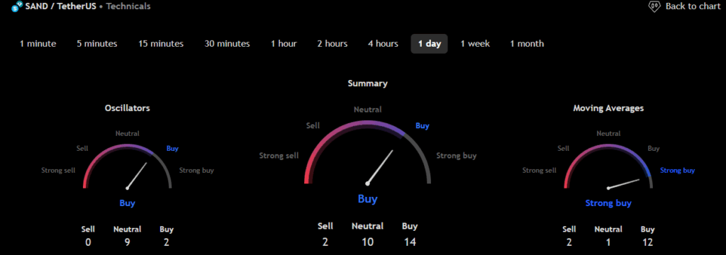 उपरोक्त चार्ट की रीडिंग से, हम The Sandbox (SAND) की मूल्य गति के संबंध में निम्नलिखित निष्कर्ष निकाल सकते हैं।